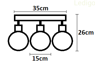 | Wymiary | średnica plafonu 35cm, średnica pojedynczego klosza 15cm, wysokość 26cm |