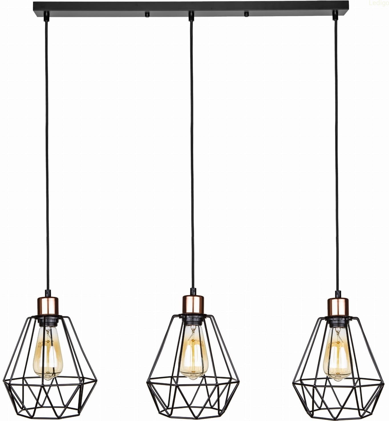 Lampa wisząca loft DIAMENT listwa potrójna czarna rose gold