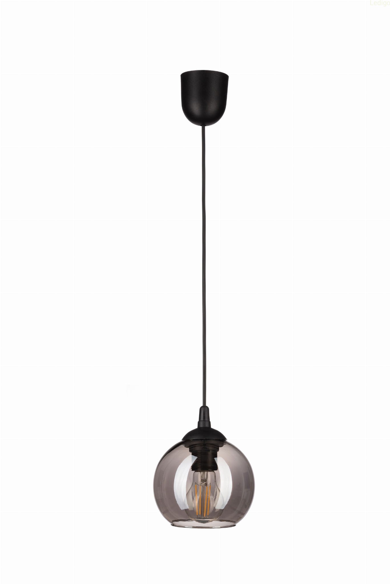 Rodzaj lampy: lampa wisząca Dwuobwodowość: nie Rodzaj gwintu: E27 Styl: nowoczesny Tworzywo: szkło Kolor uchwytu: Czarny Kolor kabla: Czarny Kolor podsufitki: Czarna Wymiary: Maksymalna długość zwisu wynosi 70cm, średnica klosza 15cm Waga produktu: 0,500 kg Stopień ochrony IP: IP20 Regulacja wysokości: tak Napięcie: 230V Źródło światła w zestawie: nie