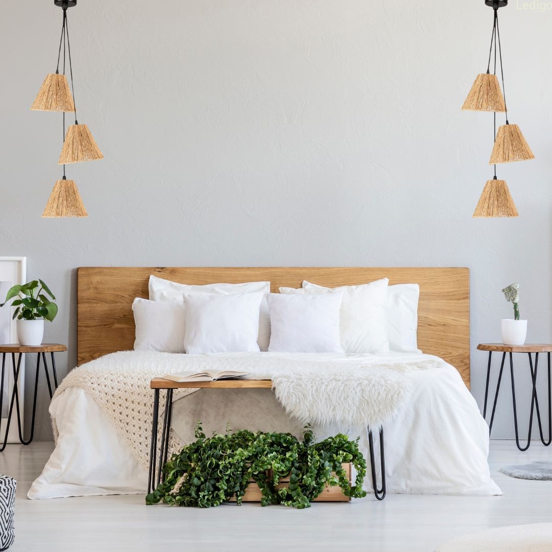 Jakość - lampa wykonana z dbałością o szczegóły. Abażury z naturalnej trawy morskiej na eleganckich przewodach w oplocie.