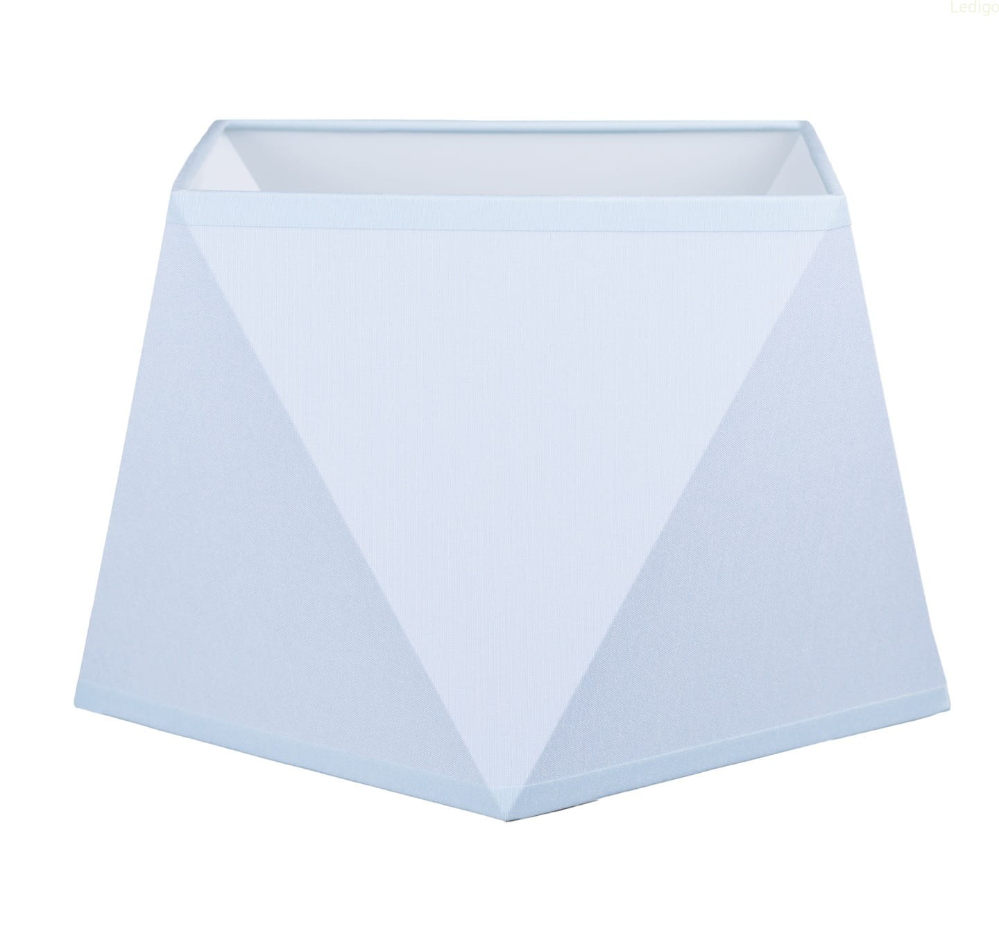 Typ: klosz Tworzywo: tkanina Kolor obudowy: błękitny Kolor wnętrza: Biały Wymiary: Wysokość - 15cm, szerokość 23cm Wzór: nie Kształt: Diament Gwint: E27