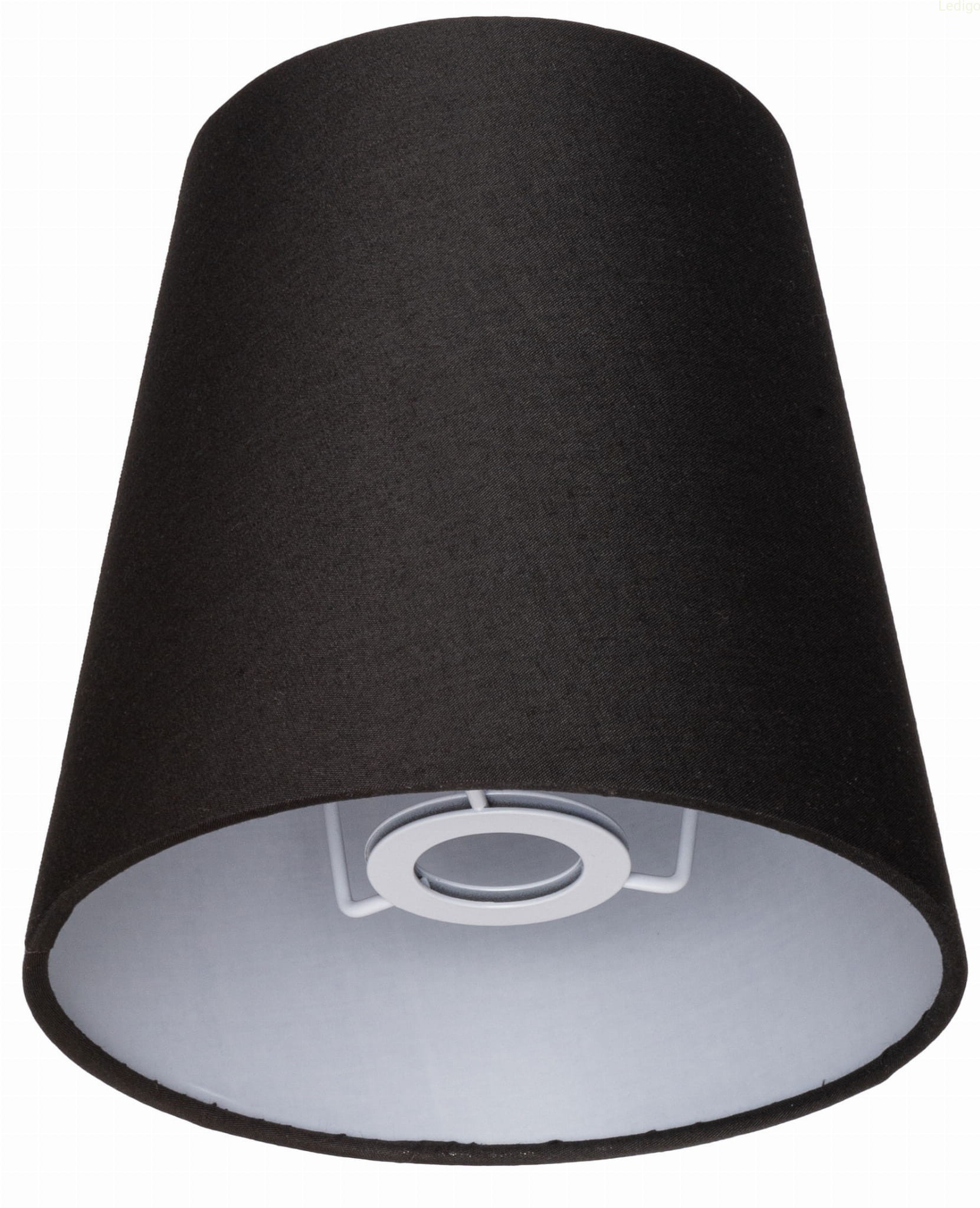 Abażur ma czarny kolor. Wykonany jest z tkaniny, ma kształt stożka.
