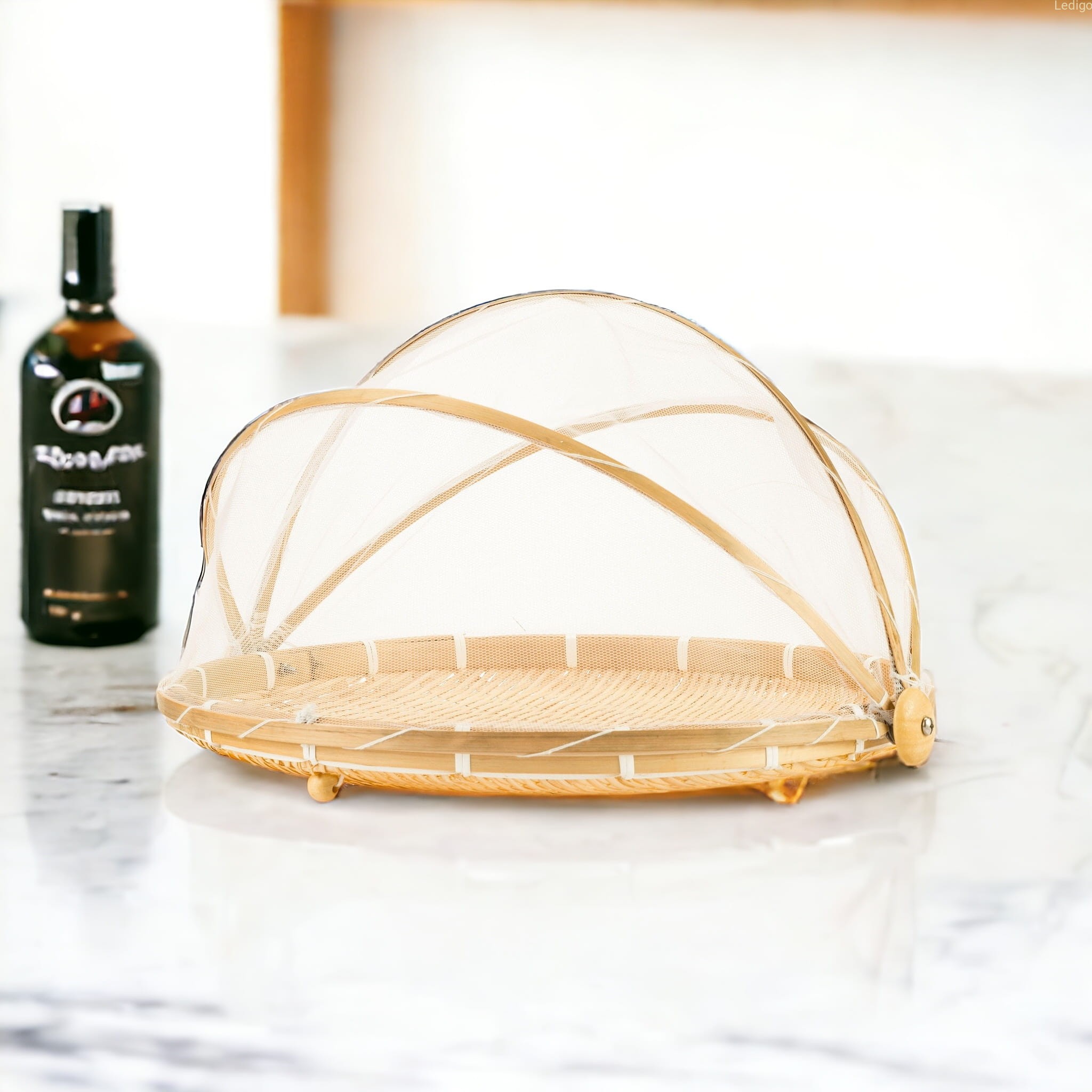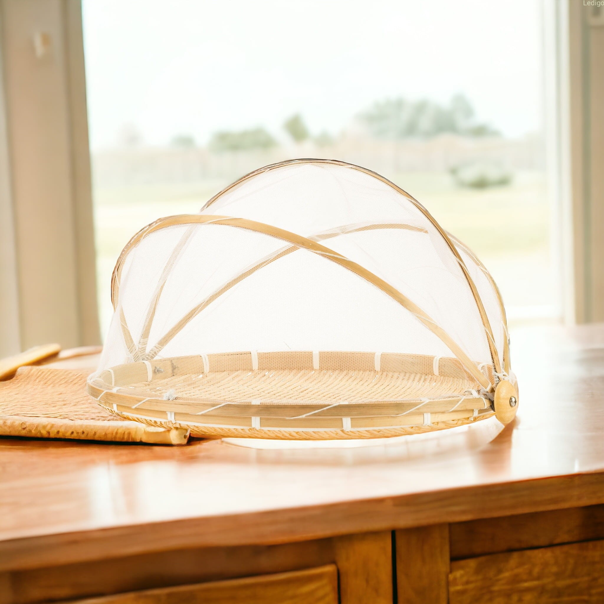 Bambusowy chlebak z moskitierą z tiulu skutecznie ochroni twoją żywność przez muszkami i innymi owadami.