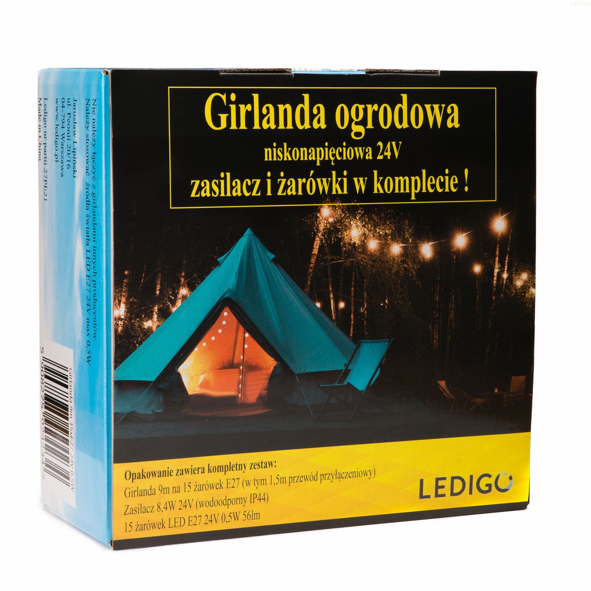 Girlanda ogrodowa 9m 15 żarówek LED niskonapięciowa 24V