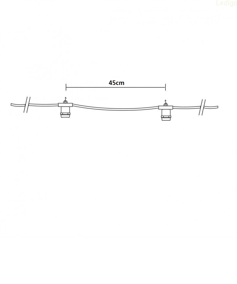 - Zaczepy na wysokości każdej z 20 opraw co znacznie ułatwia zamontowanie girlandy praktycznie w każdym miejscu