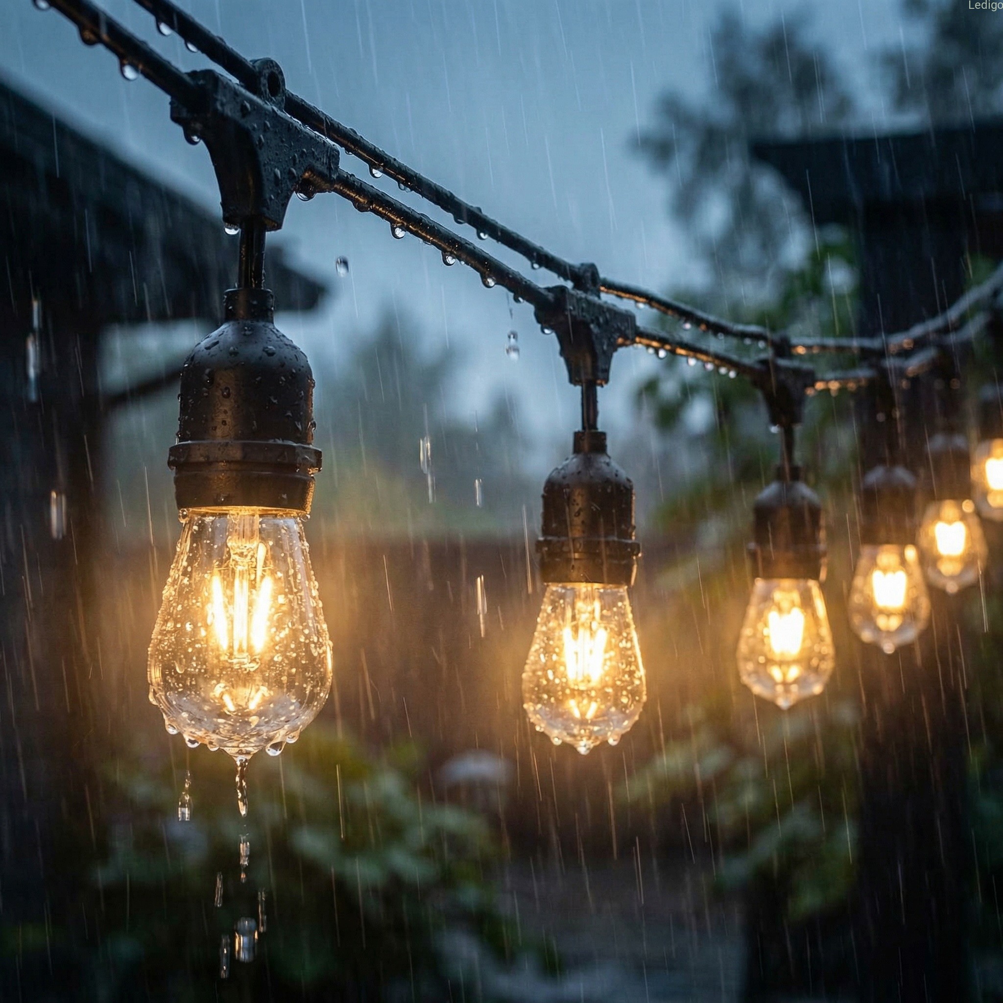 - Zabezpieczenie antywilgociowe: każda z opraw posiada zabezpieczenie dzięki czemu girlanda może funkcjonować na dworze bez względu na warunki atmosferyczne ( mgła czy deszcz)