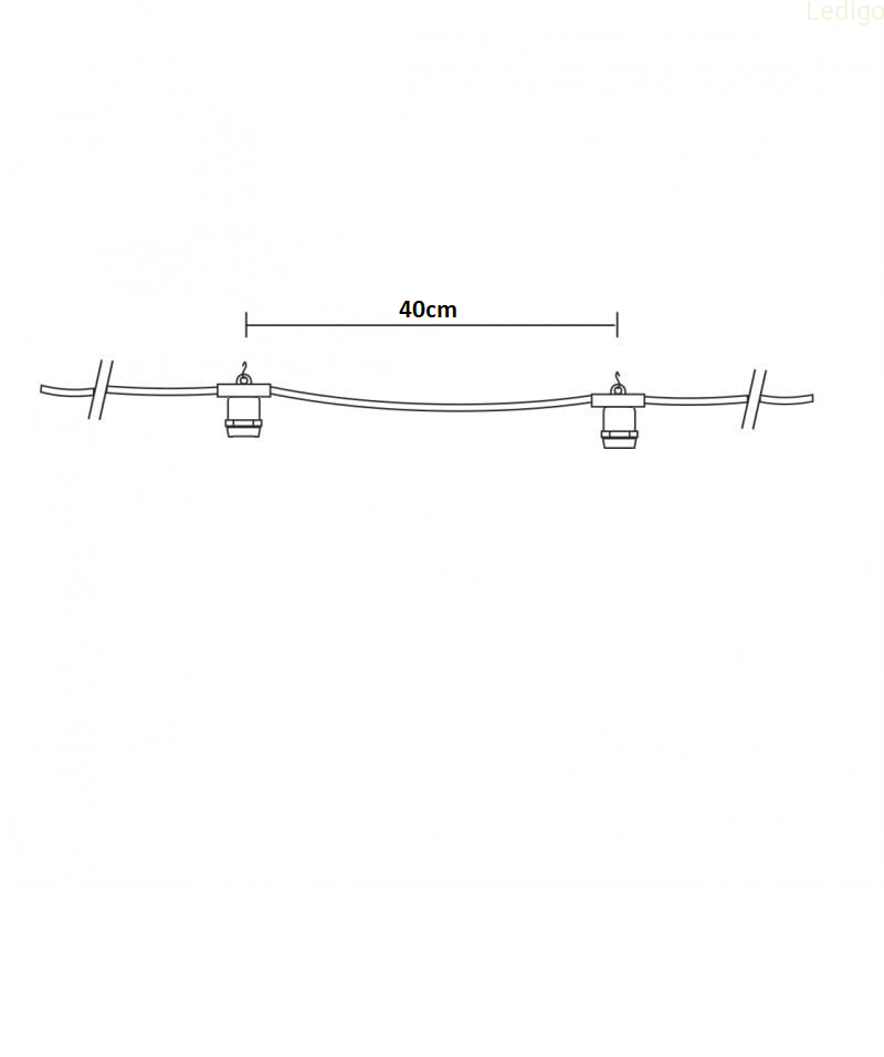 - Zaczepy na wysokości każdej z 10 opraw co znacznie ułatwia zamontowanie girlandy praktycznie w każdym miejscu