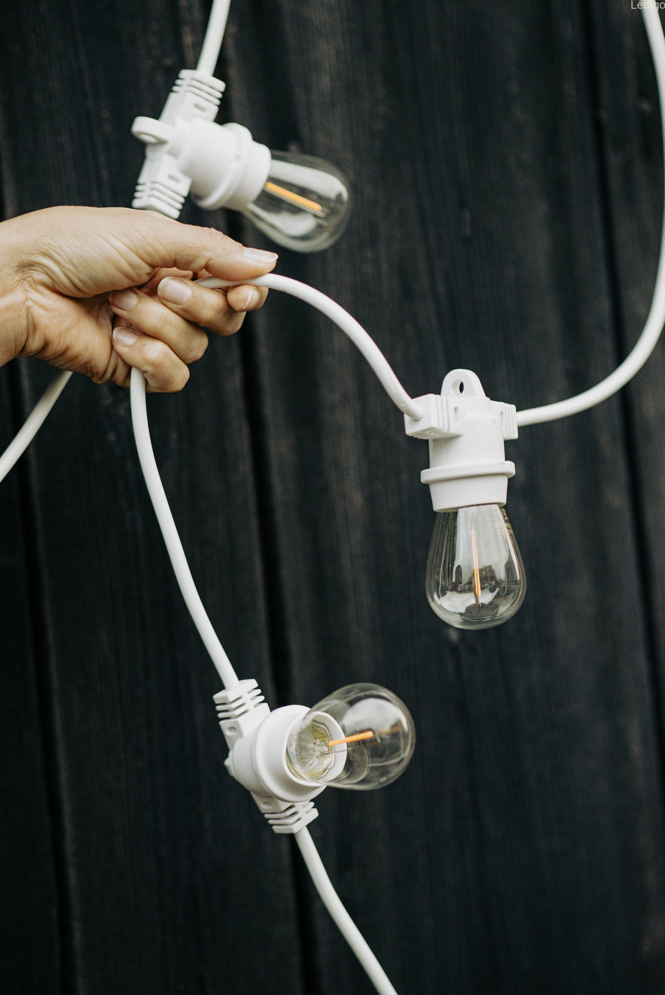 - Zaczepy na wysokości każdej z 20 opraw co znacznie ułatwia zamontowanie girlandy praktycznie w każdym miejscu