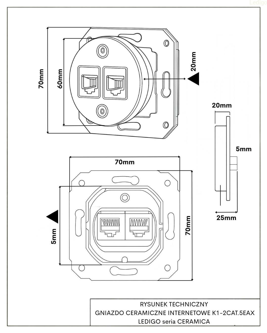 Gniazdo ceramiczne INTERNETOWE BEZ RAMKI K1-2CAT.5EAX