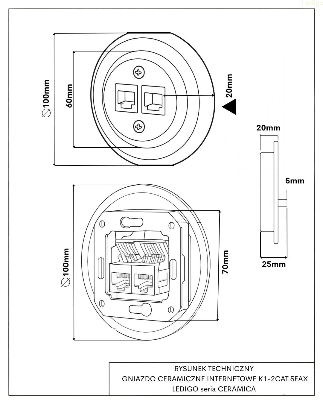 GNIAZDO CERAMICZNE INTERNETOWE Z RAMKĄ K1-2CAT.5EA