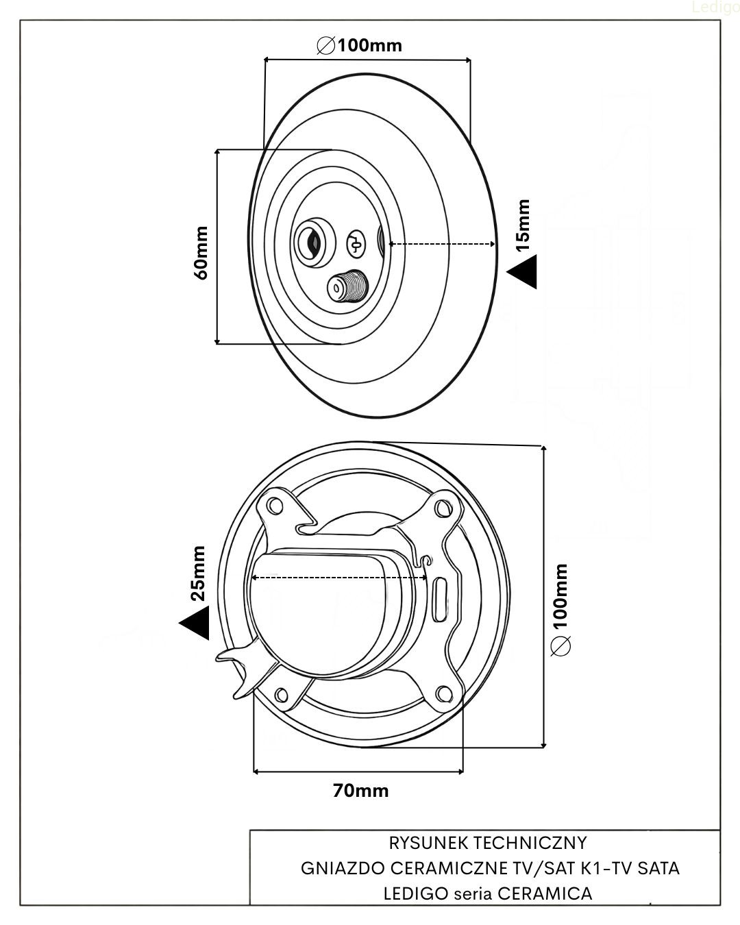 Gniazdo ceramiczne TV/SAT Z RAMKĄ K1-TV SATA WHITE