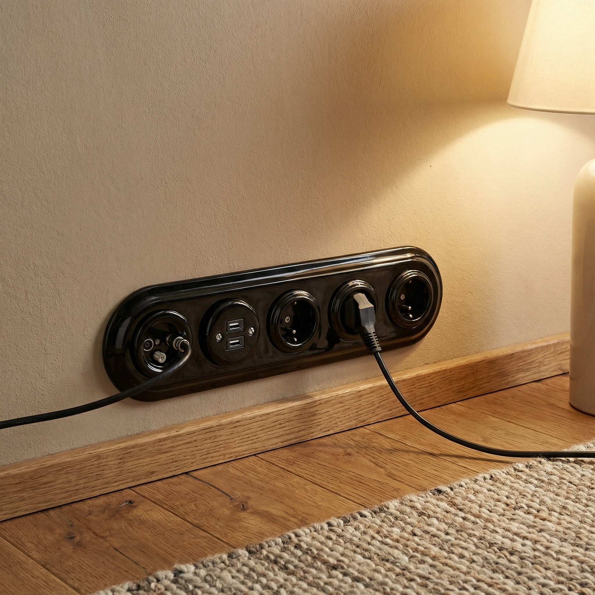 Podtynkowe gniazdo TV/SAT w stylu retro wykonane z wysokiej jakości ceramiki powlekanej porcelaną w czarnym kolorze. Produkt zachwyca klasyczną elegancją nawiązującą do włoskich projektów z przełomu XIX i XX wieku. Prosta forma a zarazem ponadczasowy design sprawia, że po nasze akcesoria elektryczne sięgają nawet najbardziej wymagający klienci.