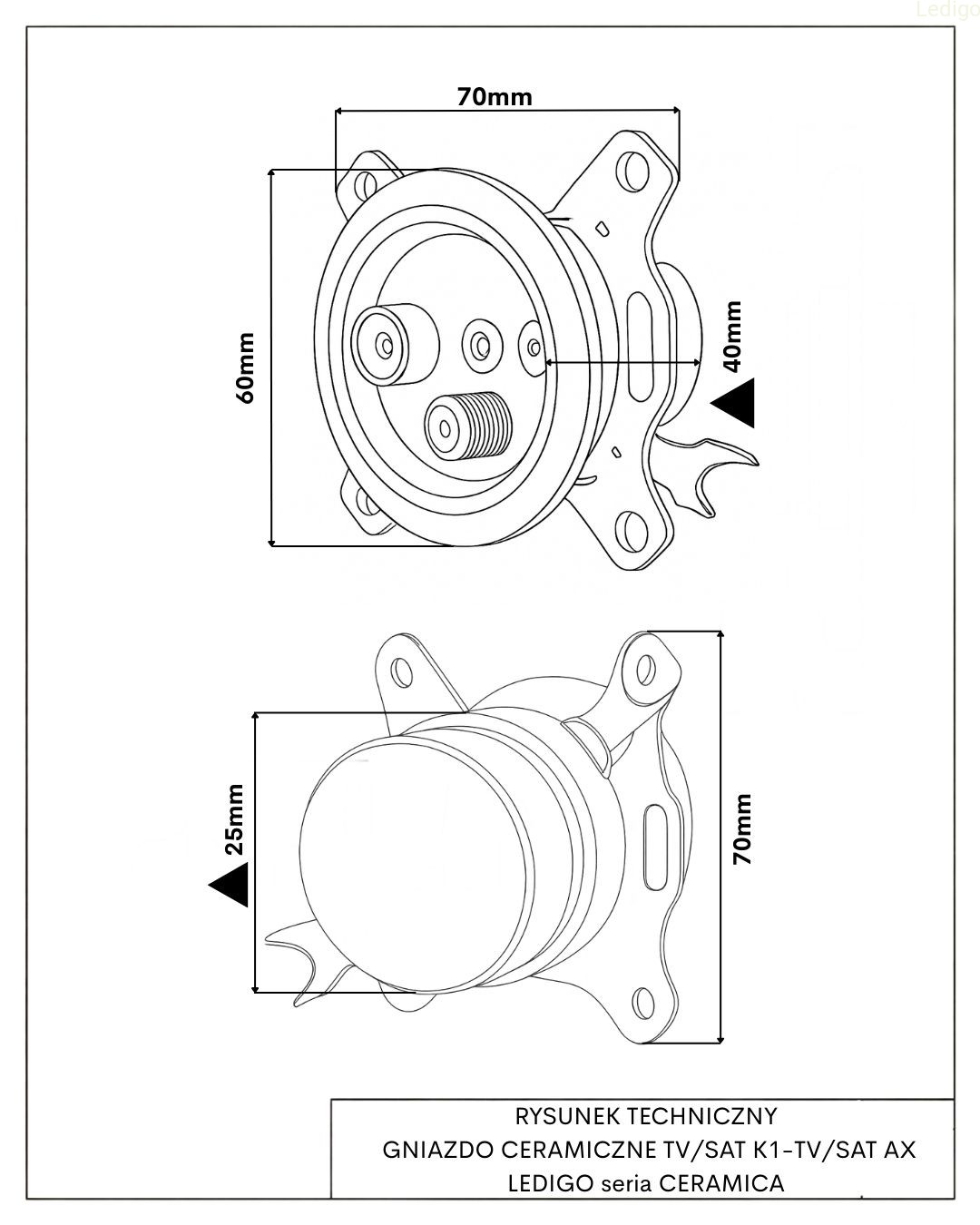 Gniazdo ceramiczne czarne TV/SAT BEZ RAMKI K1-TV/SAT AX