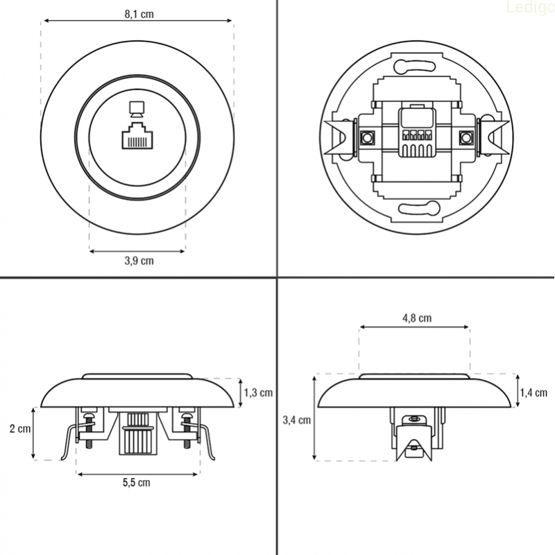 Gniazdo komputerowe EX1 odpowiednie jest do montażu wewnątrz suchych pomieszczeń, tj. salon, sypialnia, gabinet, korytarz, kuchnia, klatka schodowa.