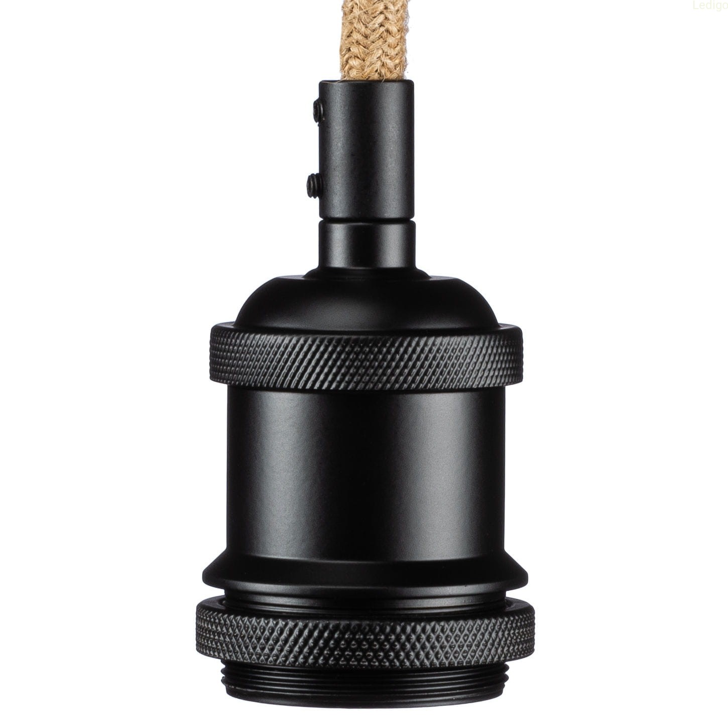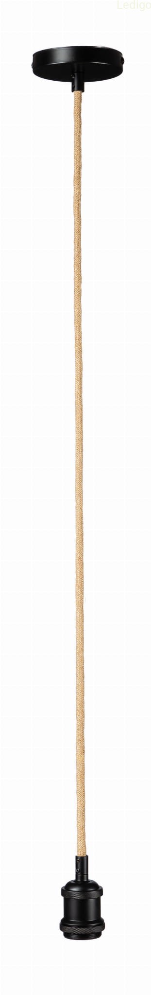 Kabel w oplocie jutowym z oprawą matowa czerń do lampy E27