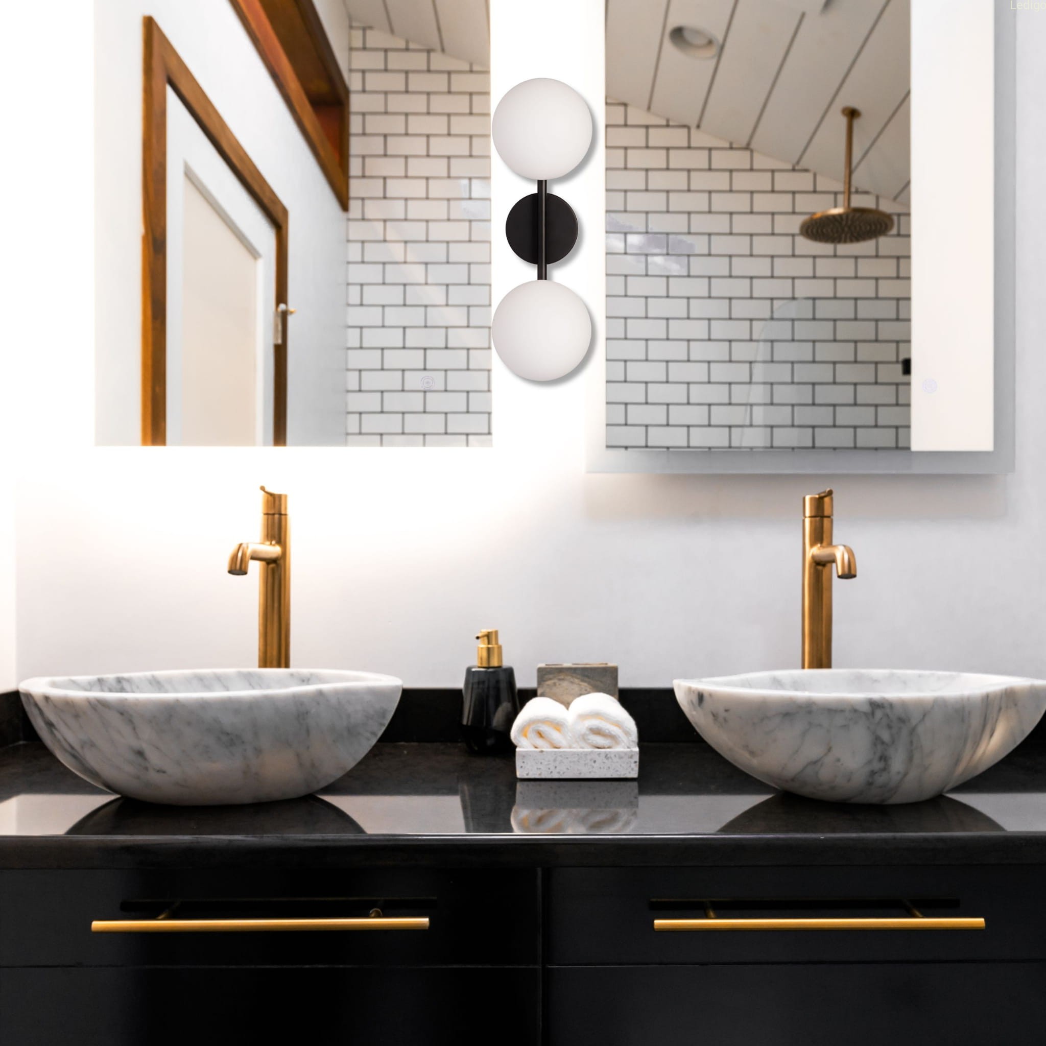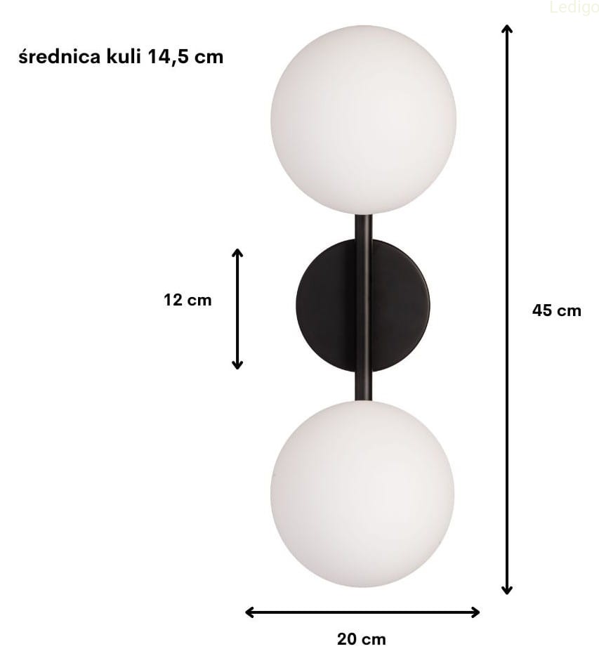Kinkiet Milano black podwójny mleczne kule