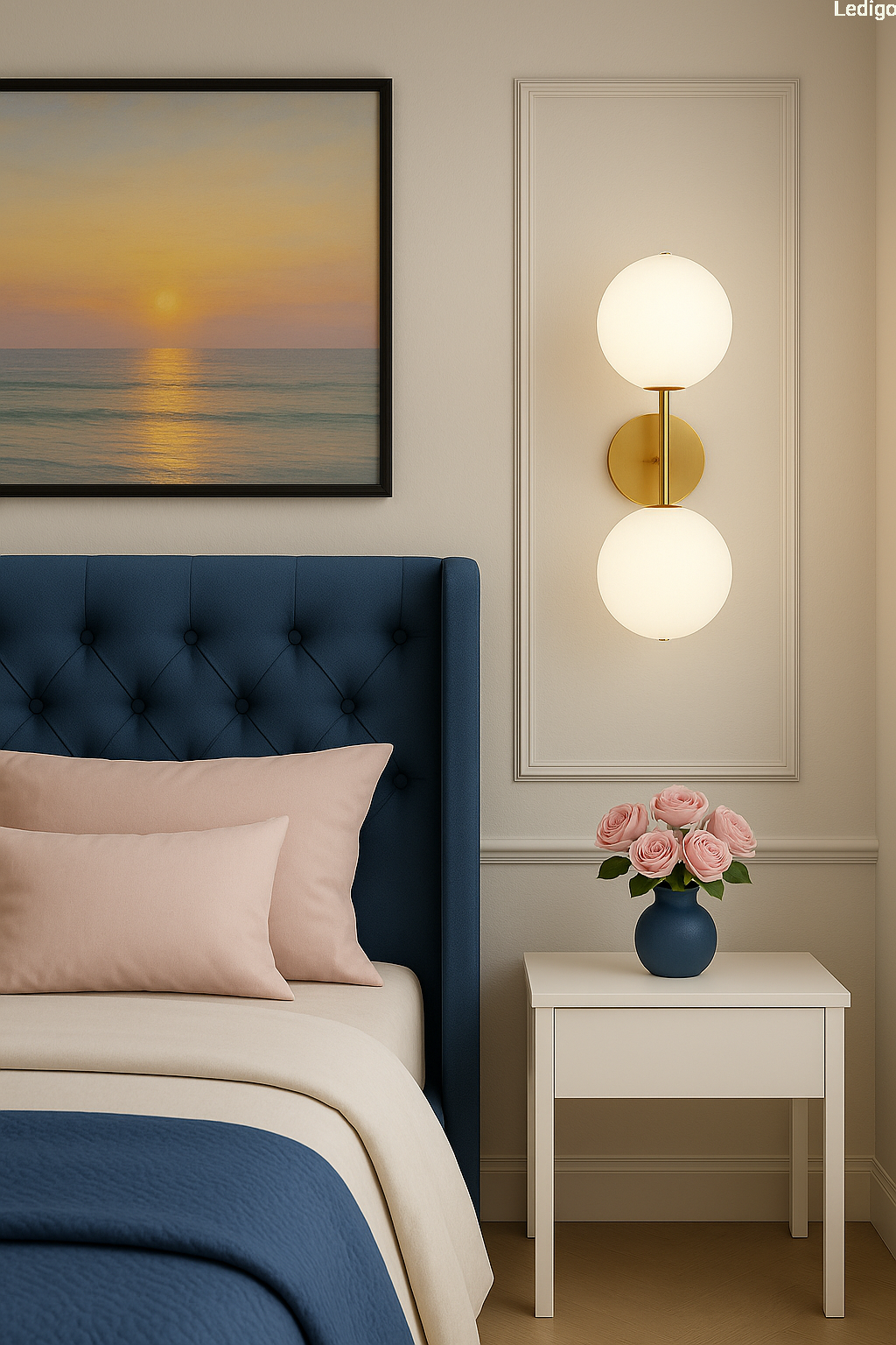 - sypialni: jako elegancka lampka nocna przy łóżku (oszczędza miejsce na szafce).