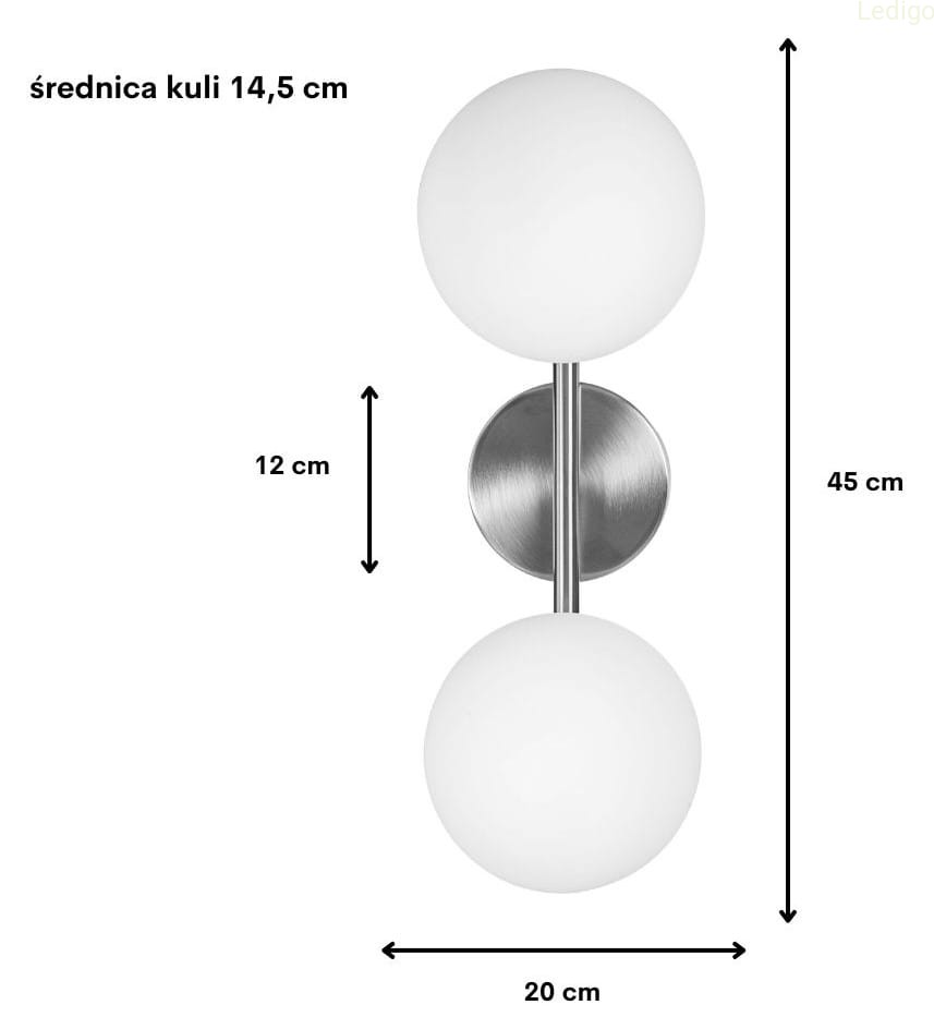 Kinkiet Milano silver podwójny mleczne kule