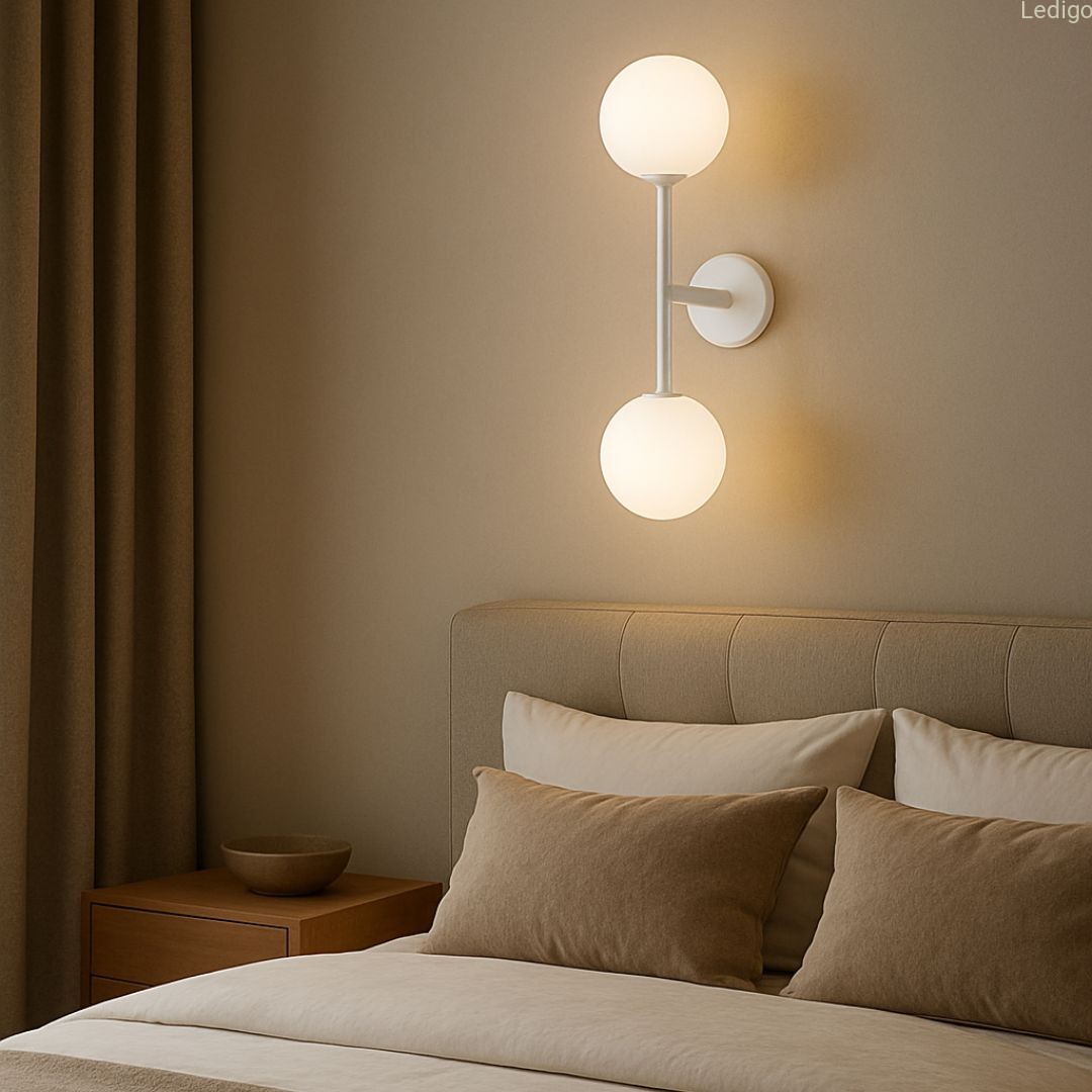 - sypialni: jako elegancka lampka nocna przy łóżku (oszczędza miejsce na szafce).
