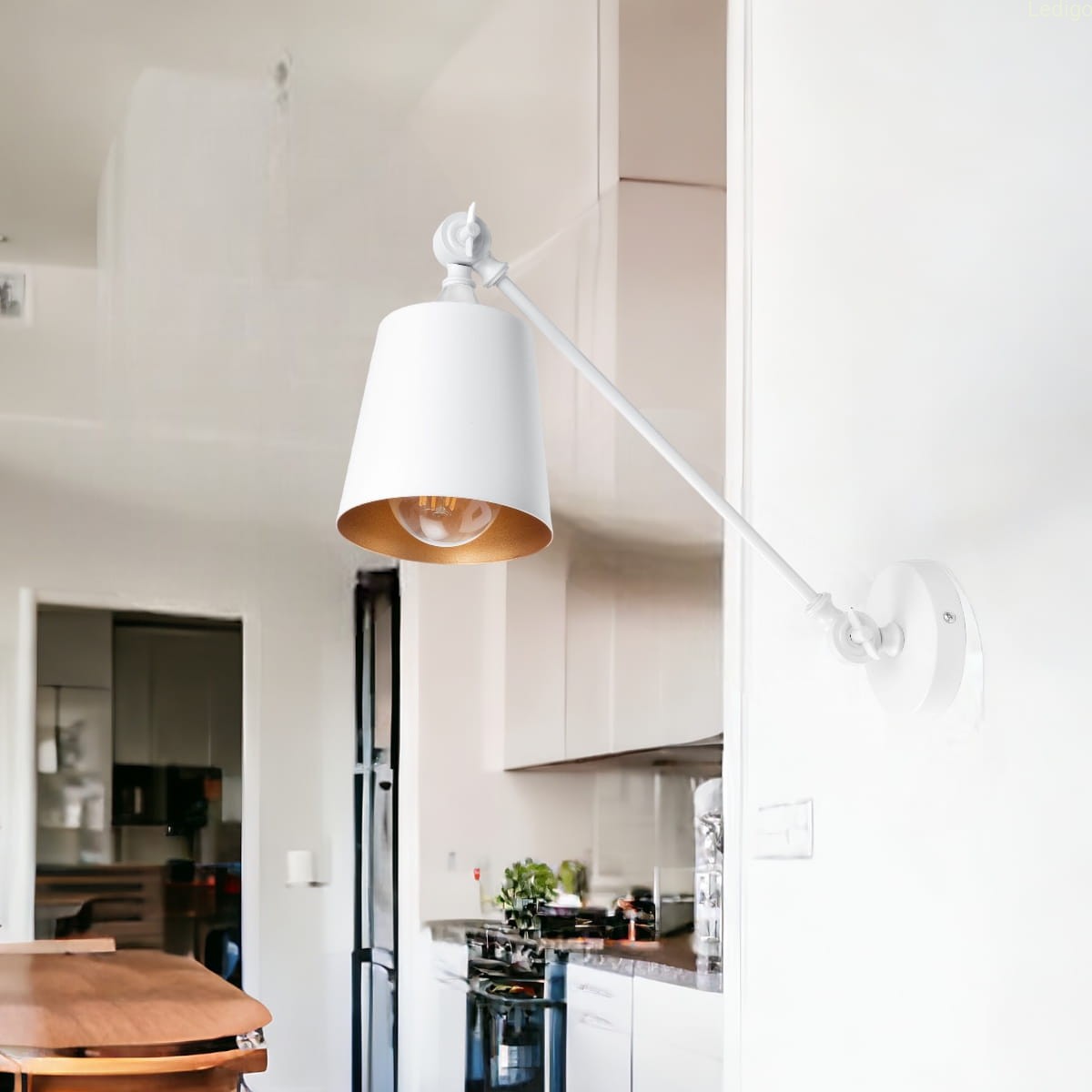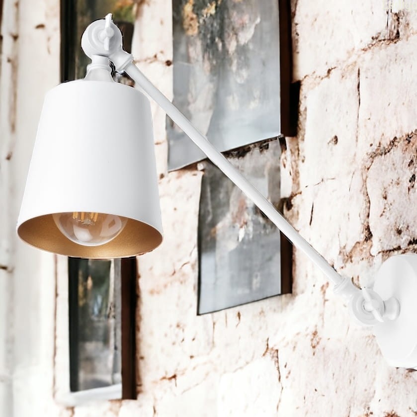 Rodzaj lampy: kinkiet Dwuobwodowość: nie Rodzaj gwintu: E27 Styl: loft Tworzywo: metal Kolor klosza: biały Kolor uchwytu: Biały Kolor podstawy lampy: Biały Kolor podsufitki: Biała metalowa Wymiary: długość ramienia 30 cm, wysokość oprawki 8 cm, głębokość maskownicy 2,5 cm Szerokość klosza: 13 cm Wysokość klosza: 13 cm Waga produktu: 1,100 kg Stopień ochrony IP: IP20 Regulacja wysokości: tak Napięcie: 230V Źródło światła w zestawie: nie Czas realizacji: 24h