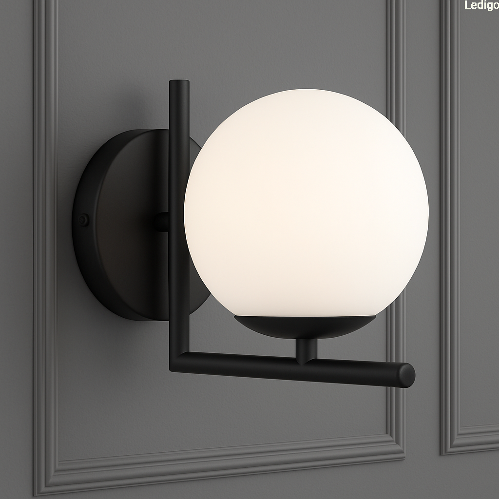 Kinkiet Milano Sun z firmy Ledigo to kwintesencja nowoczesnej elegancji, która łączy minimalistyczną formę z luksusowym wykończeniem. Przyciąga wzrok geometryczną formą z metalu w odcieniu subtelnej matowej czerni, na której osadzony jest kulisty klosz z mlecznego szkła.