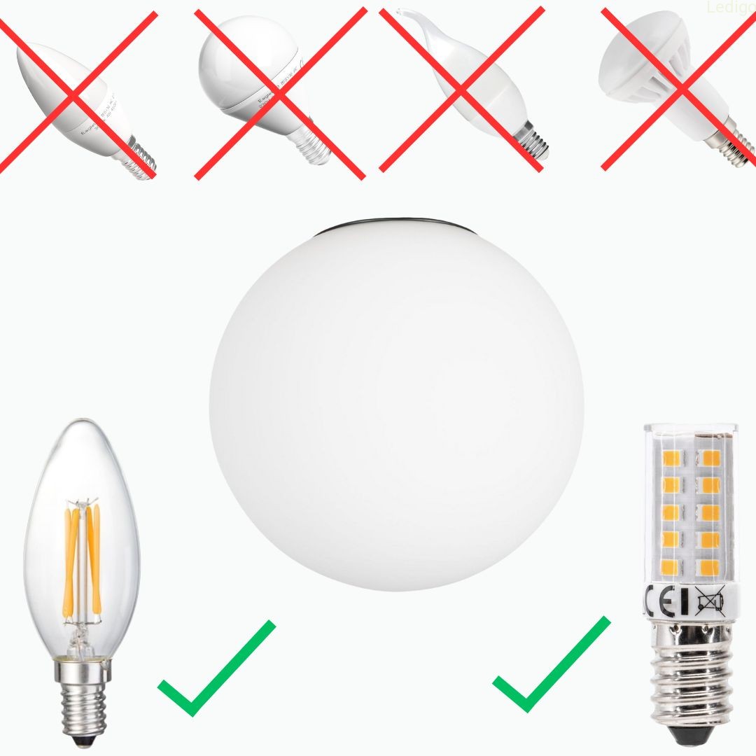 Do lampki pasują wyłącznie wąskie i krótkie żarówki o maksymalnych wymiarach:
