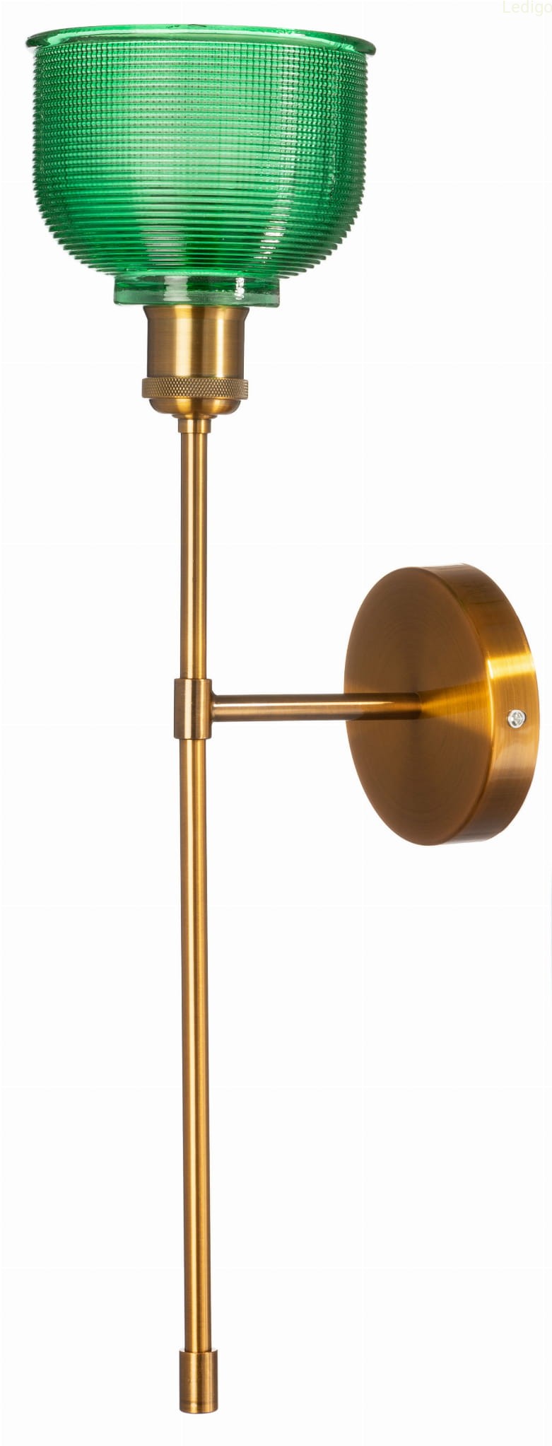 Kinkiet metalowy Bell long złoty z fasetowanym zielonym kloszem
