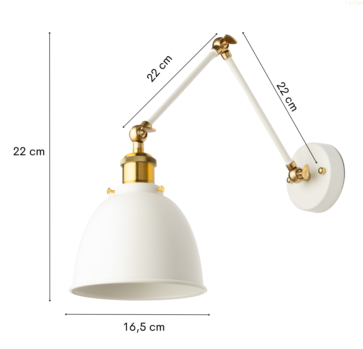 1. Optymalna forma regulacji - kinkiet posiada podwójne ramię i trzystopniową formę regulacji. Sprawdź sam jak bardzo chcesz wysunąć do przodu kinkiet i pod jakim kątem ustawić klosz.
