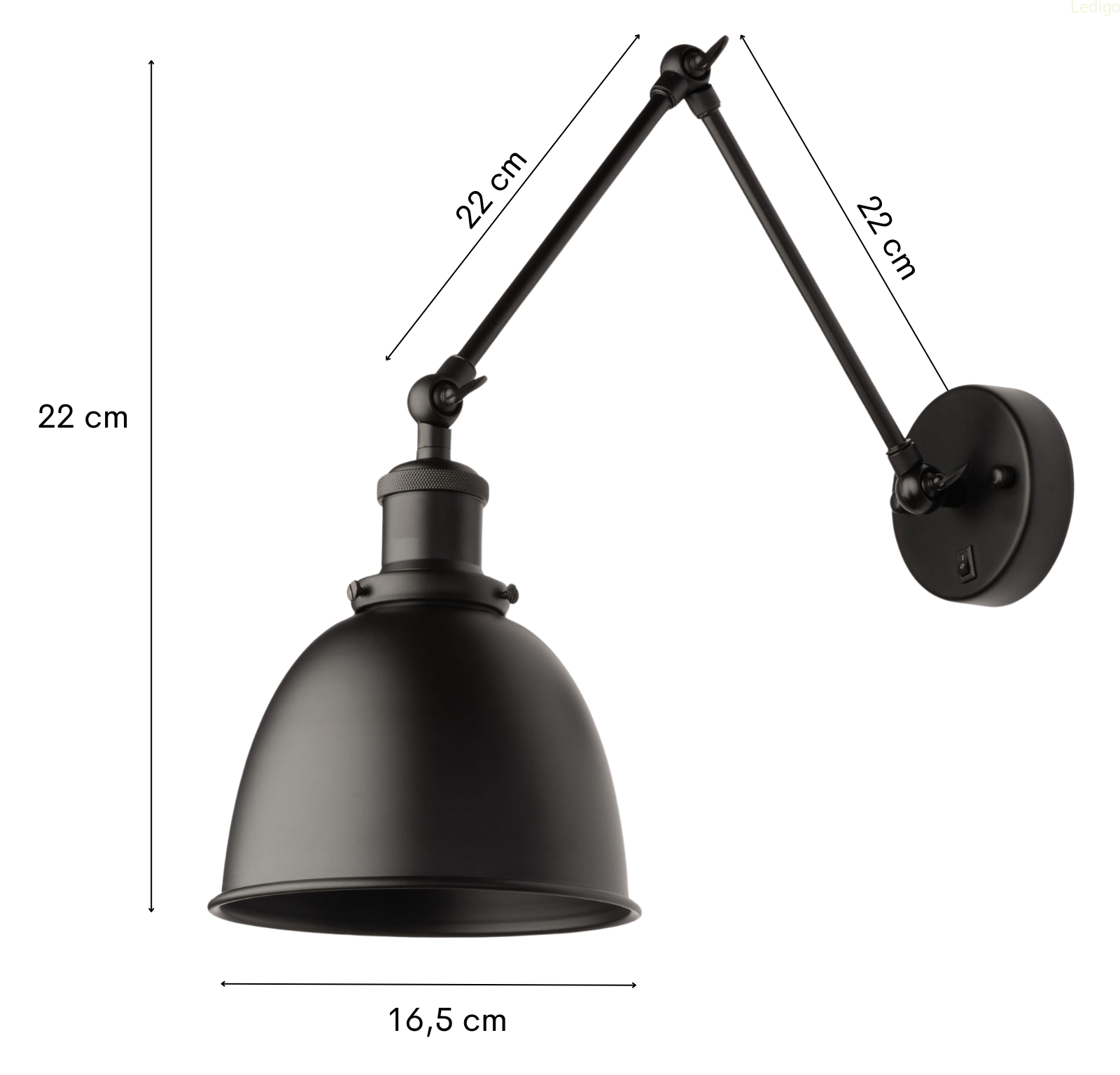 1. Optymalna forma regulacji - kinkiet posiada podwójne ramię i trzystopniową formę regulacji. Sprawdź sam jak bardzo chcesz wysunąć do przodu kinkiet i pod jakim kątem ustawić klosz.