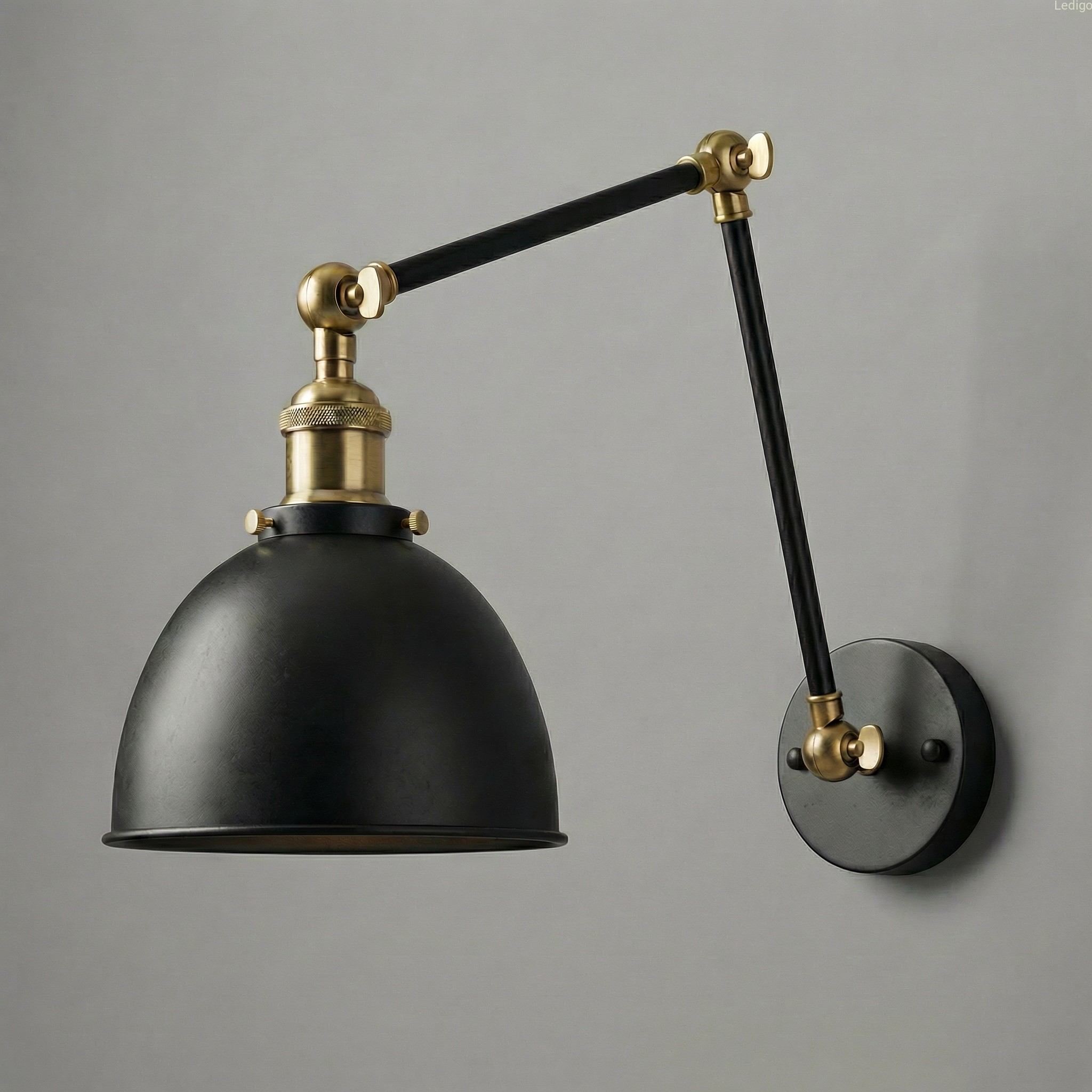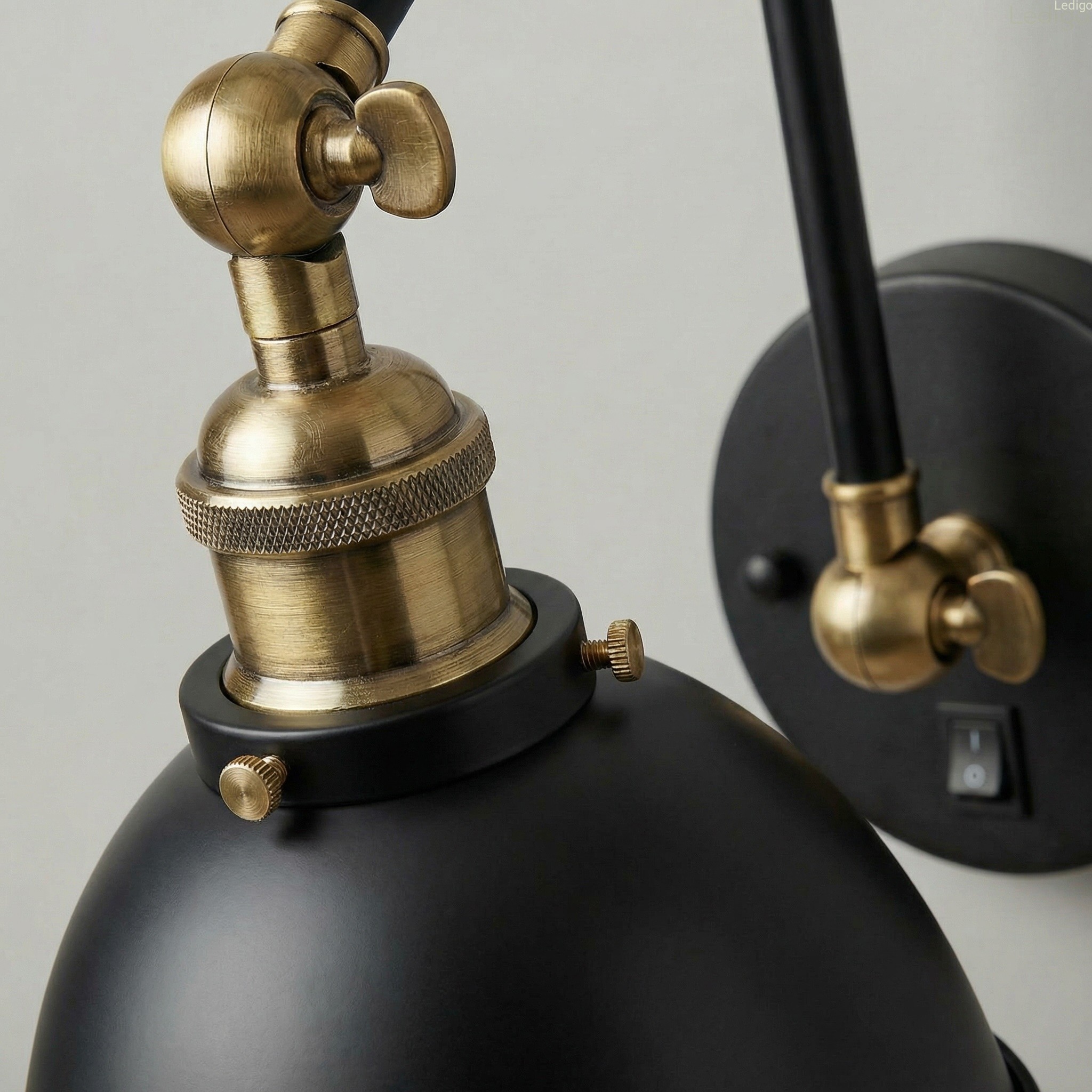 Kinkiet metalowy regulowany czarny Rustic antic brass z włącznikiem