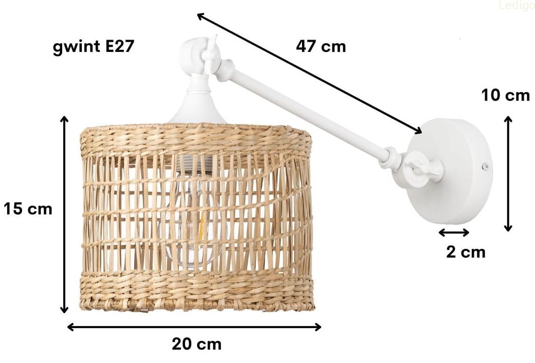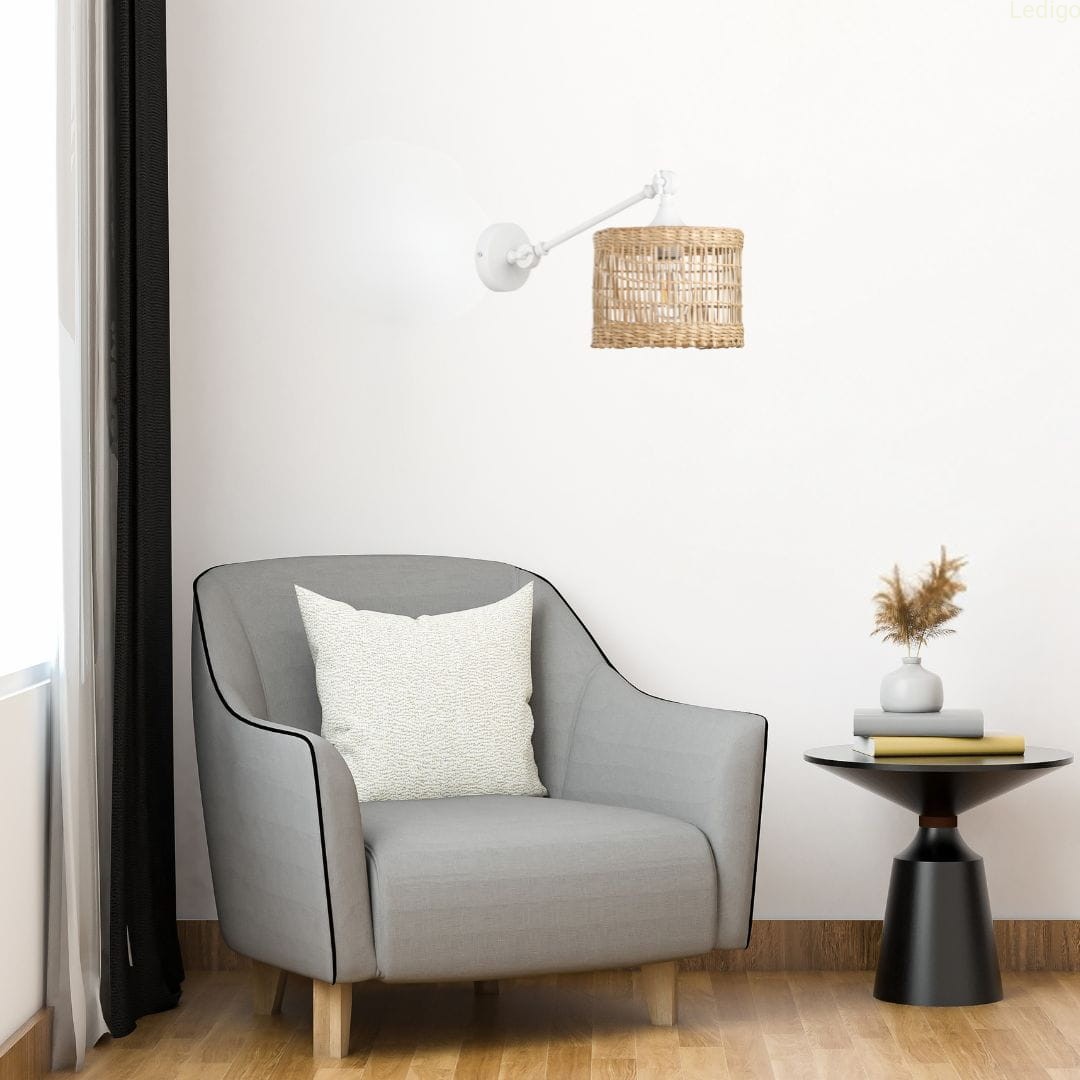 Kinkiet regulowany Rustic biały klosz trawa morska