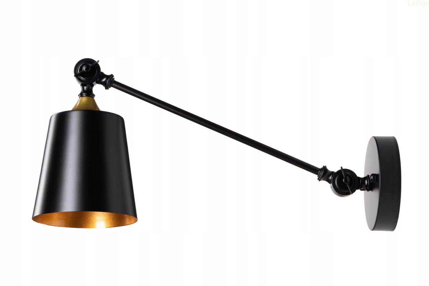 Estetyka - kinkiet wykonany z dbałością o detale. Piękne złote wykończenie klosza od wewnątrz i nasady Metalowe ramię lampy malowane metodą proszkową. Stożkowy klosz nadaje lampie charakteru