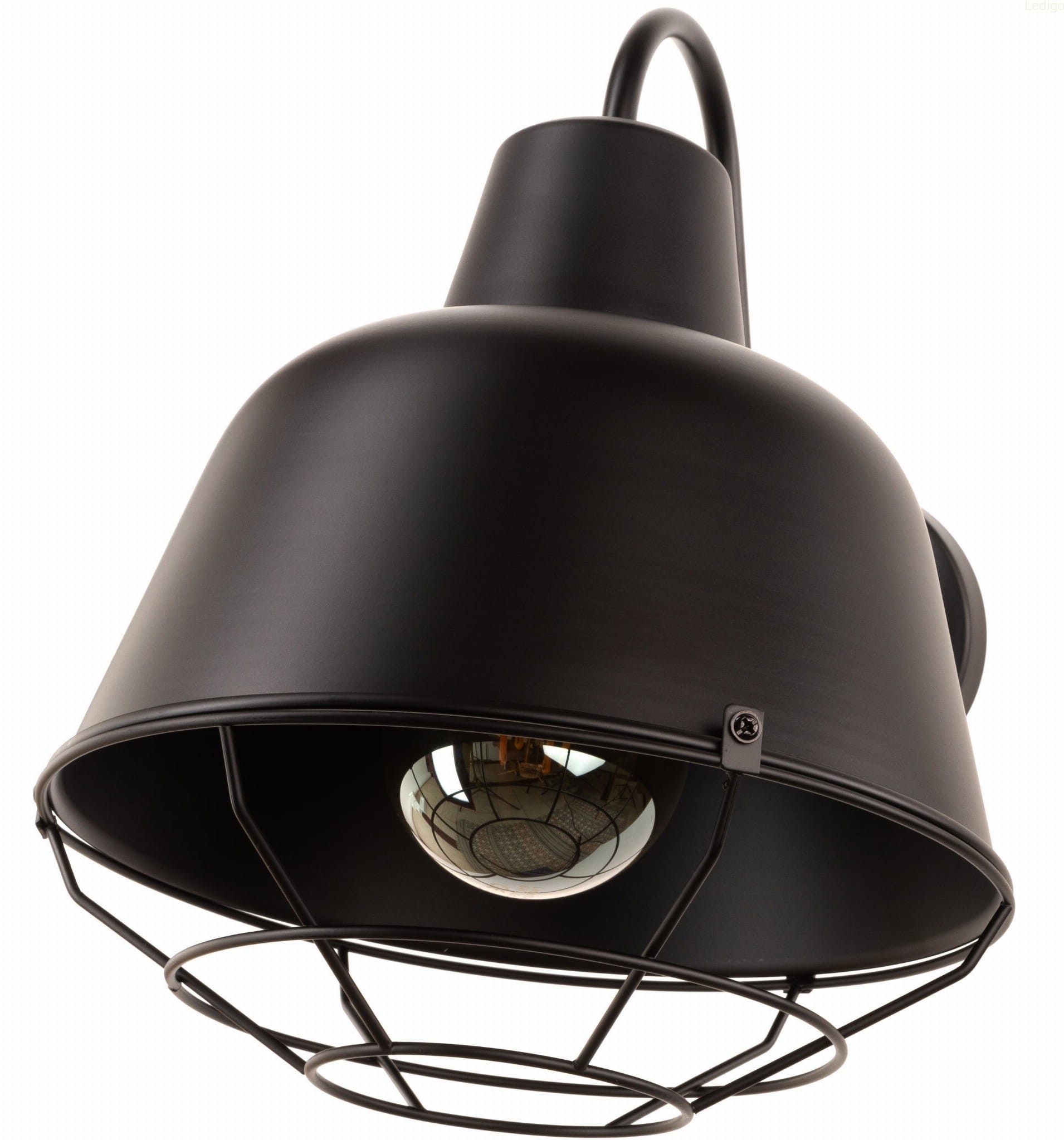 KINKIET ŚCIENNY NA ŁUKU Z METALOWYM KLOSZEM ORAZ KRATKĄ