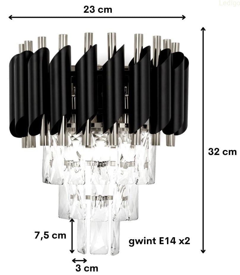 KRYSZTAŁOWY KINKIET Z KOLEKCJI LUXURY BLACK LEDIGO