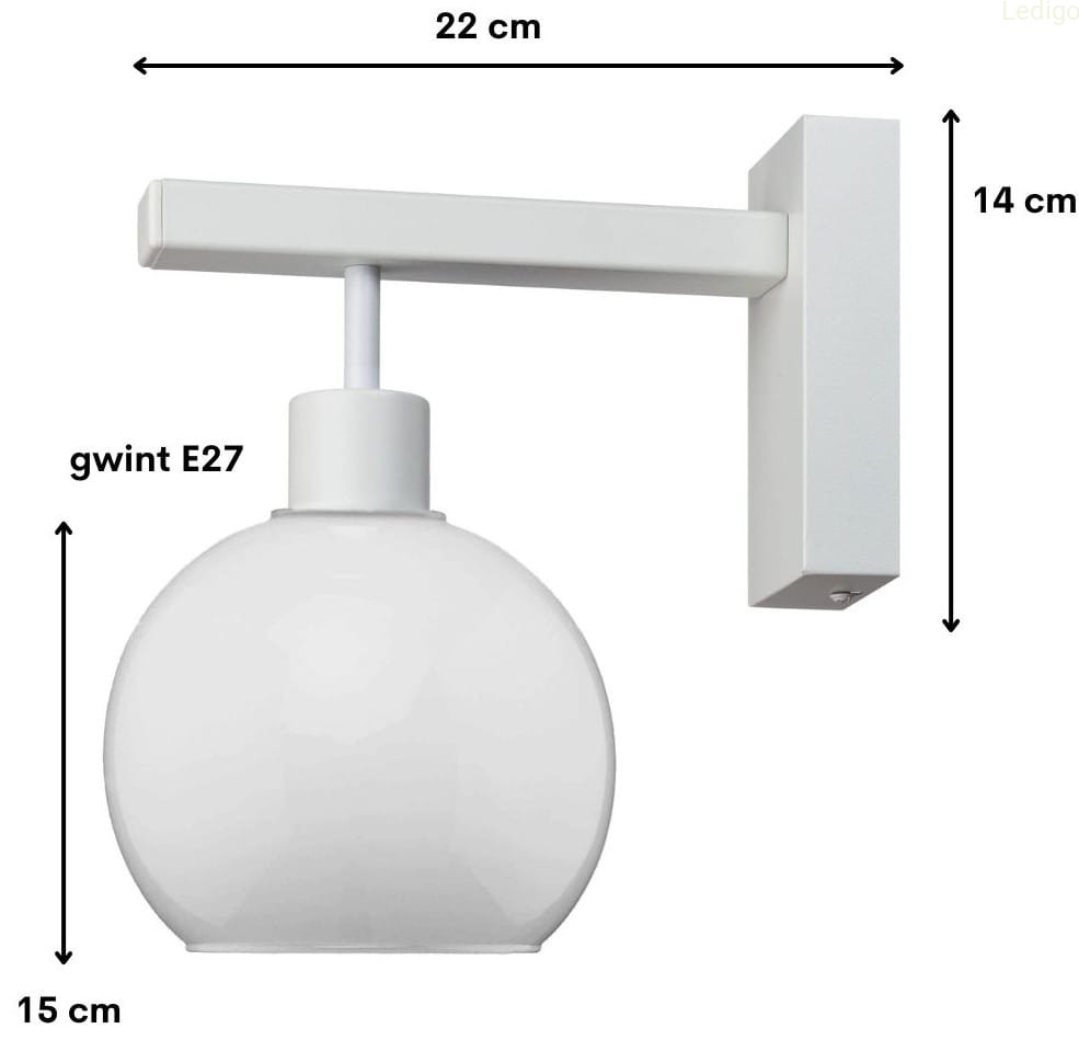 | Wymiary | średnica klosza 15cm, wysokość kinkietu 14cm, szerokość kinkietu 22cm |
