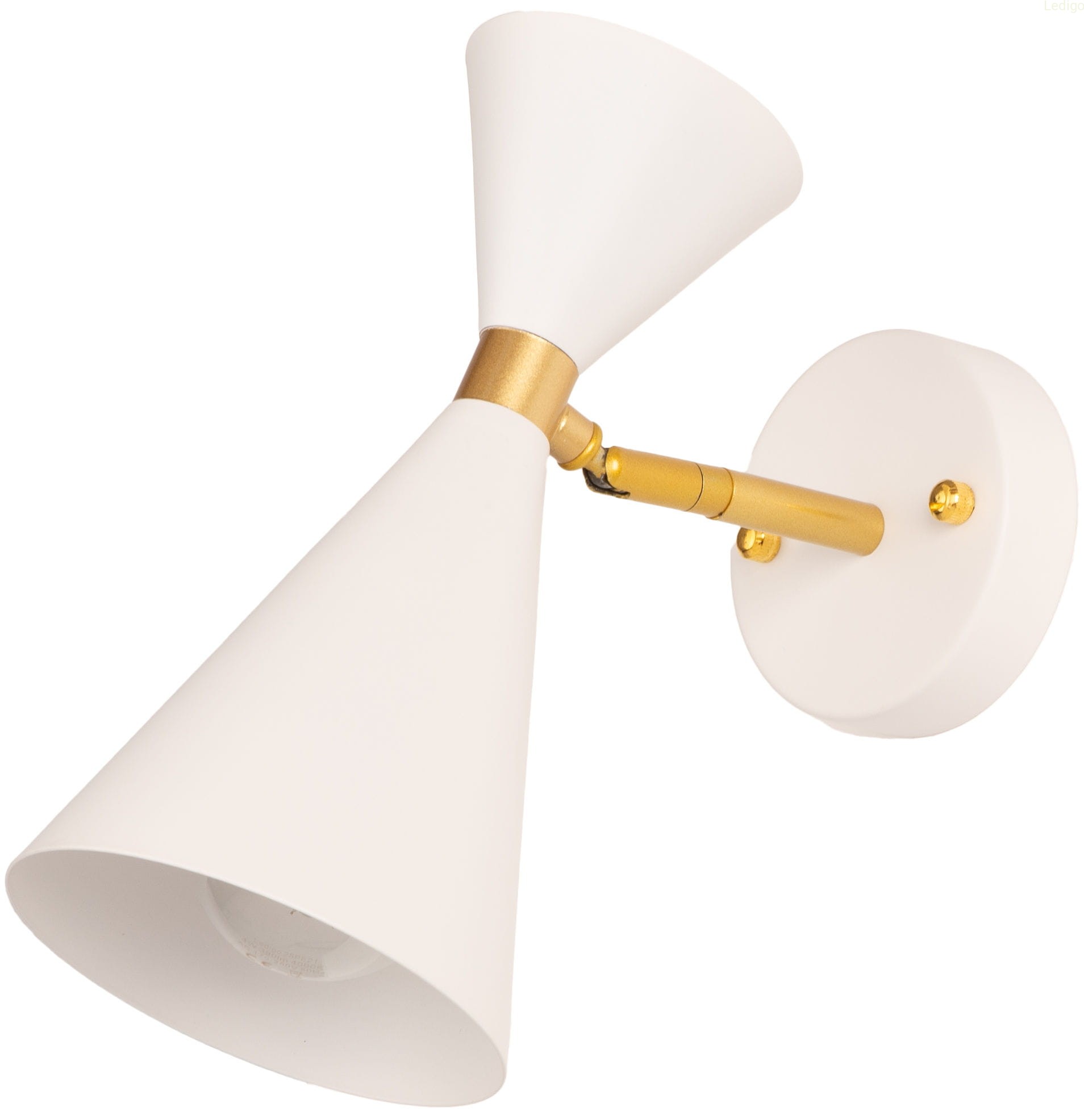 Rodzaj lampy: kinkiet Dwuobwodowość: nie Rodzaj gwintu: E27 Styl: loft Tworzywo: metal Kolor klosza: biały Kolor uchwytu: Złoty Kolor podsufitki: Okrągła, biała, metalowa Wysokość całkowita: 24,5 cm Szerokość całkowita: 22 cm Głębokość klosza: 12 cm Szerokość klosza: 12 cm Wysokość klosza: 15,5 cm Średnica maskownicy: 9,5 cm Waga produktu: 0,400 kg Stopień ochrony IP: IP20 Regulacja wysokości: nie Napięcie: 230V Źródło światła w zestawie: nie Czas realizacji: 24h