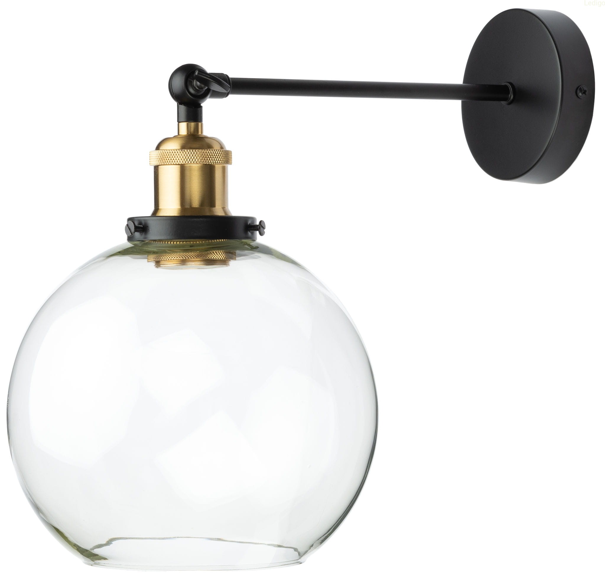 Prezentujemy kinkiet wykonany jest z metalu w kolorze matowej czerni. Oprawa w złotym kolorze sprawia że kinkiet znakomicie prezentuje się również w nowoczesnych wnętrzach. Dodatkowym atutem kinkietu jest możliwość ustawienia klosza pod różnym kątem. Regulacja motylkowa (góra dół) Kinkiet świetnie prezentuje się na tle betonu i surowej cegły może być również odważnym akcentem w rustykalnych wnętrzach. Jest znakomitym dopełnieniem wnętrz o industrialnym i loftowym charakterze. Wpisuje się również w nowoczesne aranżacje.