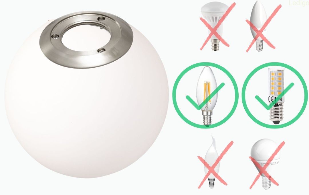 Do lampki pasują wyłącznie wąskie i krótkie żarówki o maksymalnych wymiarach: