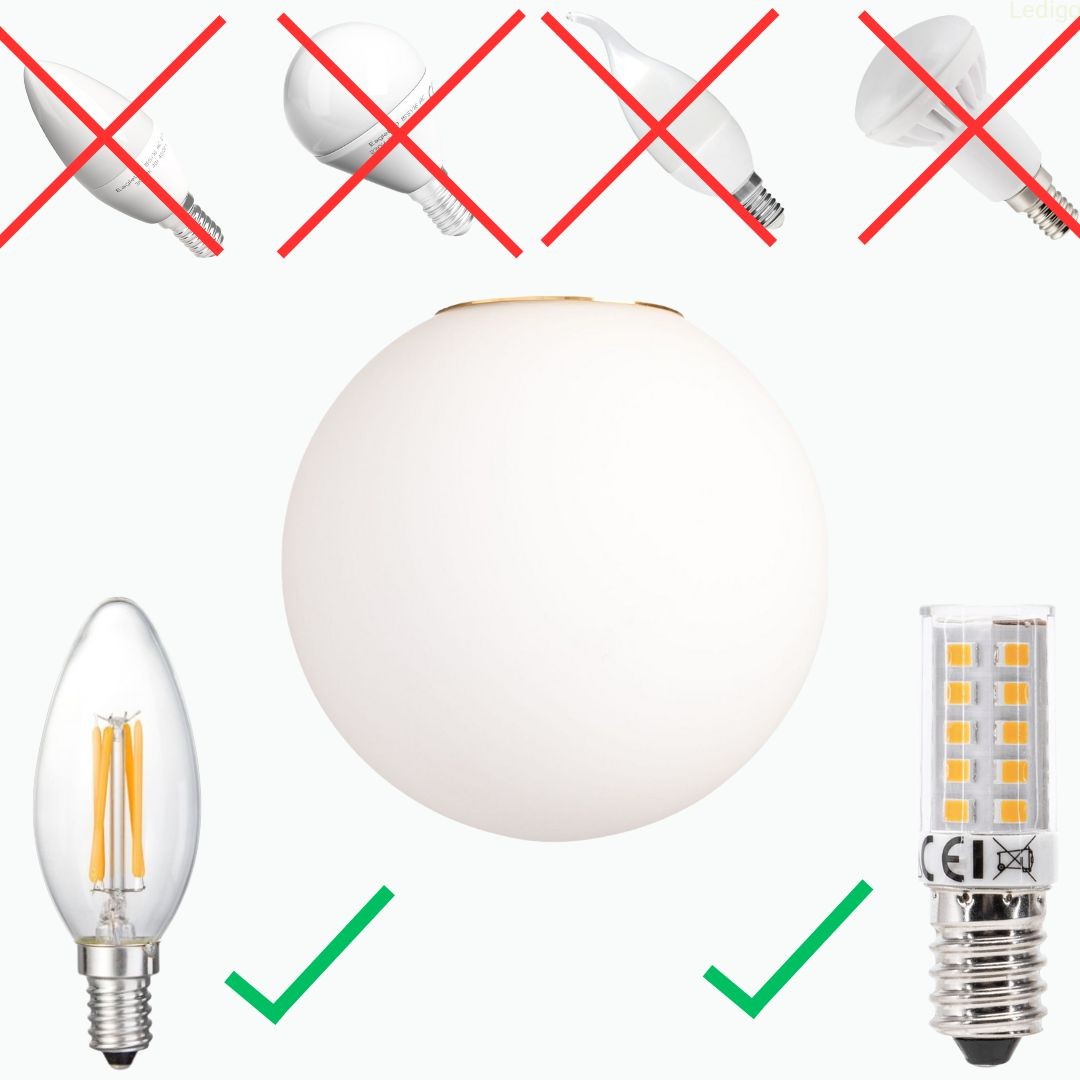 Do lampki pasują wyłącznie wąskie i krótkie żarówki o maksymalnych wymiarach: