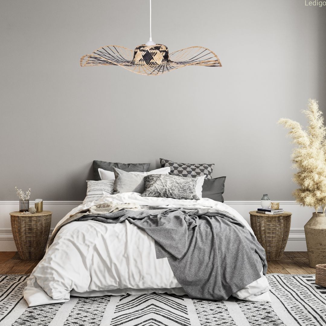 Ręcznie wypleciony z włókien bambusa, prezentuje się niezwykle subtelnie dzięki precyzyjnej plecionce. Ta unikalna plecionka nadaje abażurowi wyjątkowy charakter, łącząc w sobie piękno natury z ludzką precyzją.