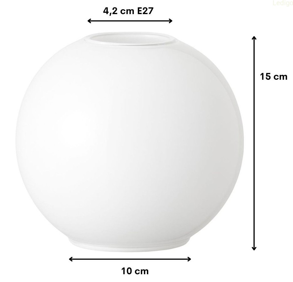 Typ: klosz Tworzywo: szkło Kolor wnętrza: Mleczny Wymiary: Średnica kulki 15cm Wzór: nie Kształt: Kulka Gwint: E27