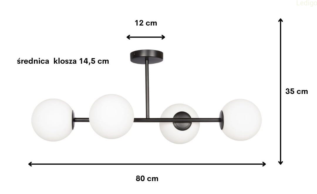 - łatwy montaż kloszy - kule są nakręcane na gwint, to bezpieczniejsze i wygodniejsze rozwiązanie niż tradycyjne sprężynki, które często rysują szkło lub pękają.
