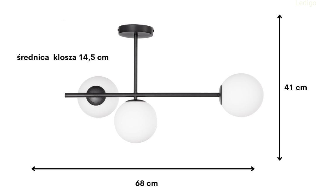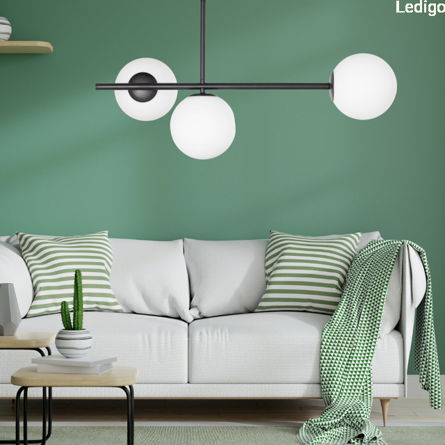 Lampa Milano czarna potrójna mleczne kule dwuobwodowa