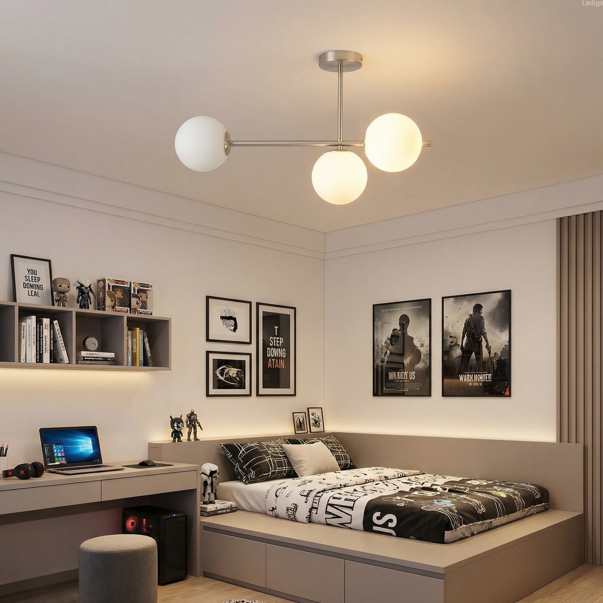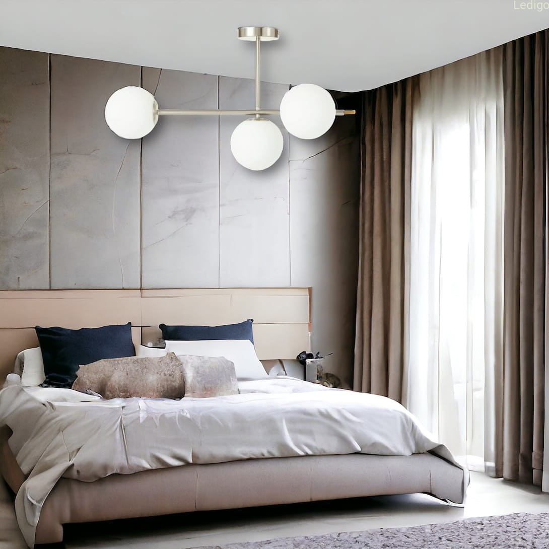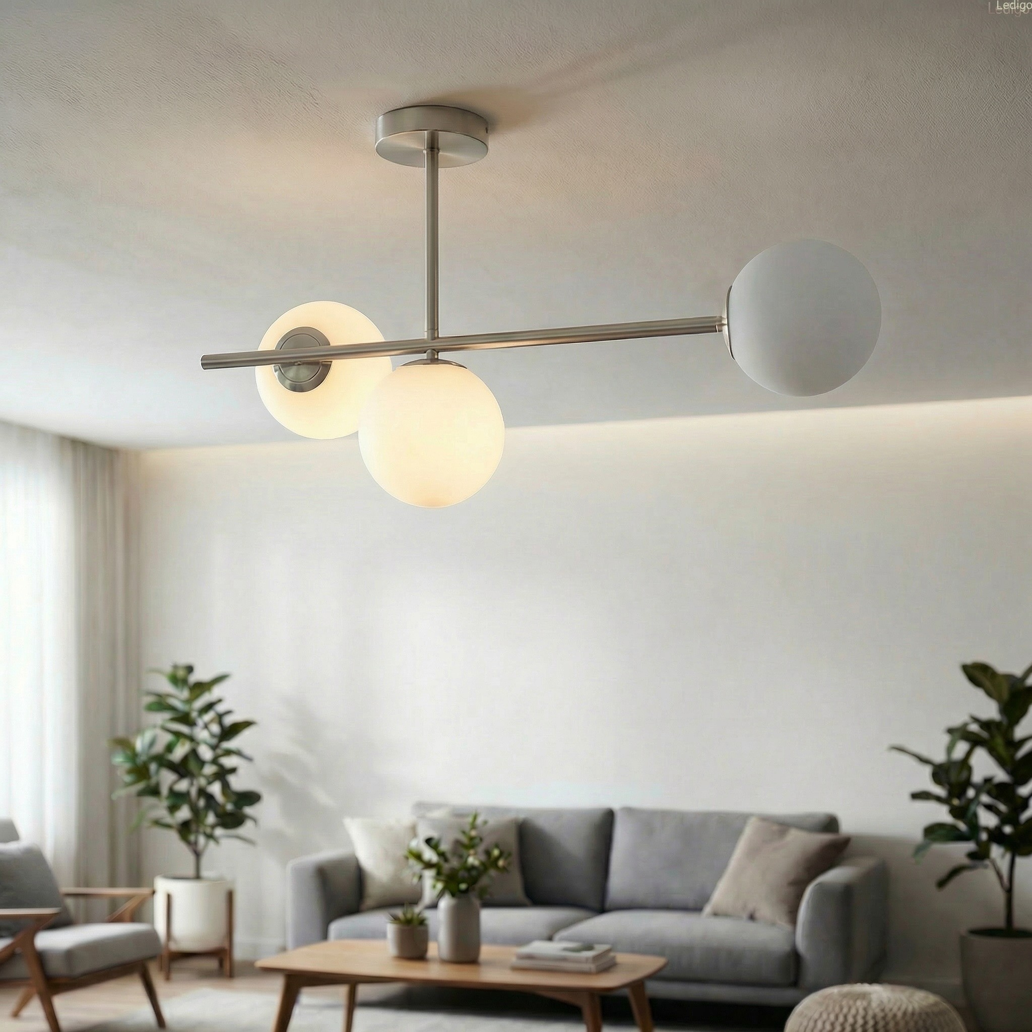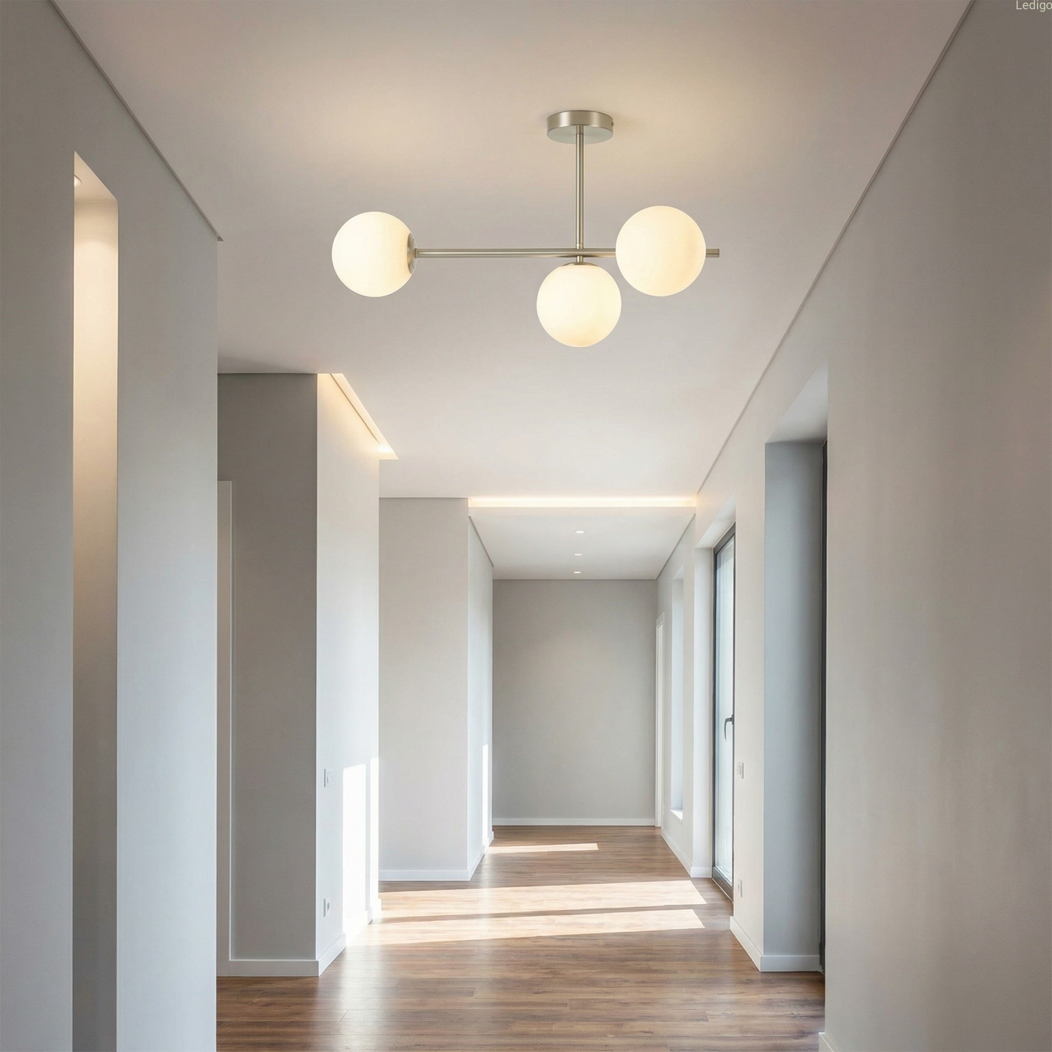 Efekt "mlecznej poświaty" - trzy perfekcyjne, szklane kule w matowej bieli idealnie rozpraszają światło. Zapomnij o rażeniu w oczy – Milano wypełnia pokój miękkim, kojącym blaskiem, który sprzyja relaksowi.