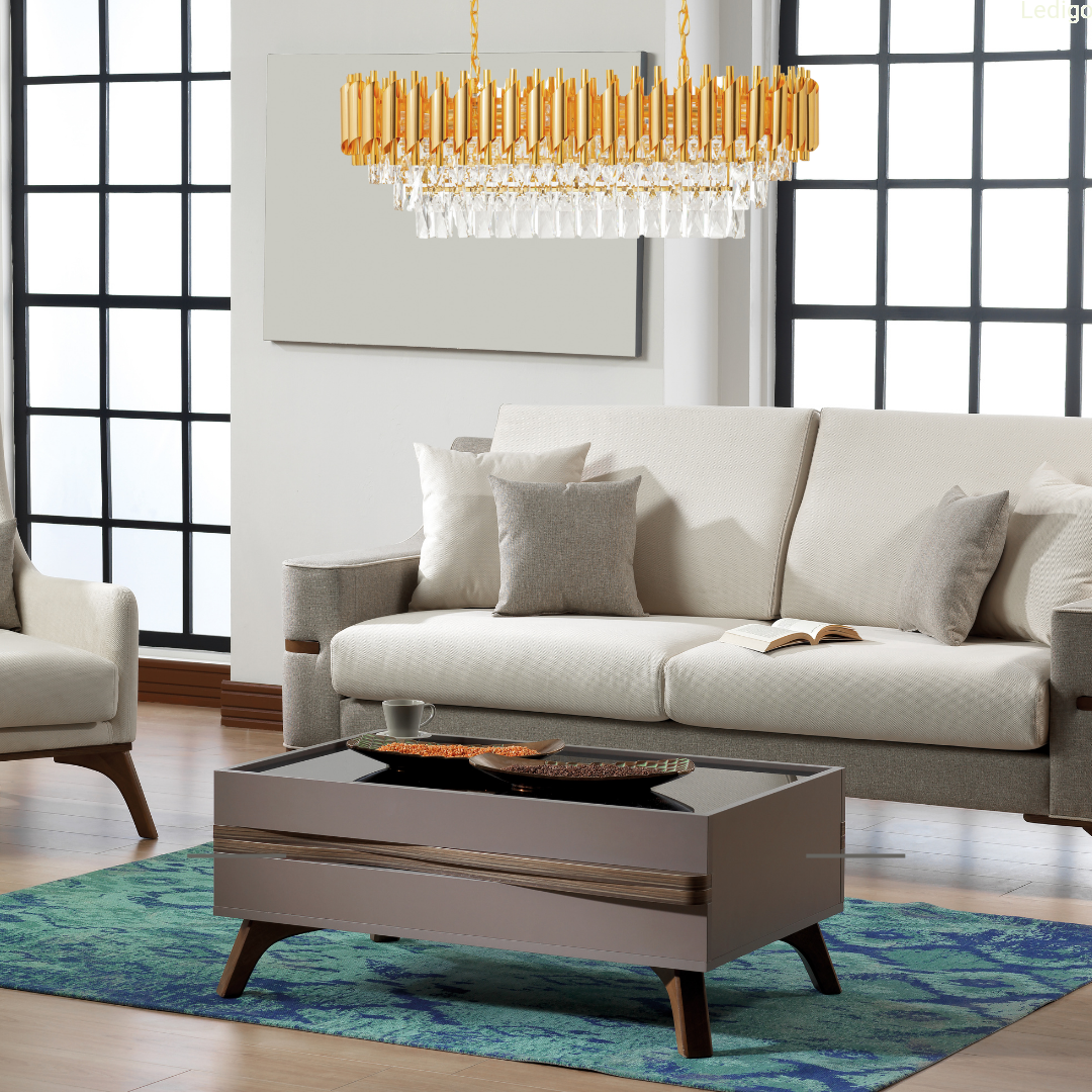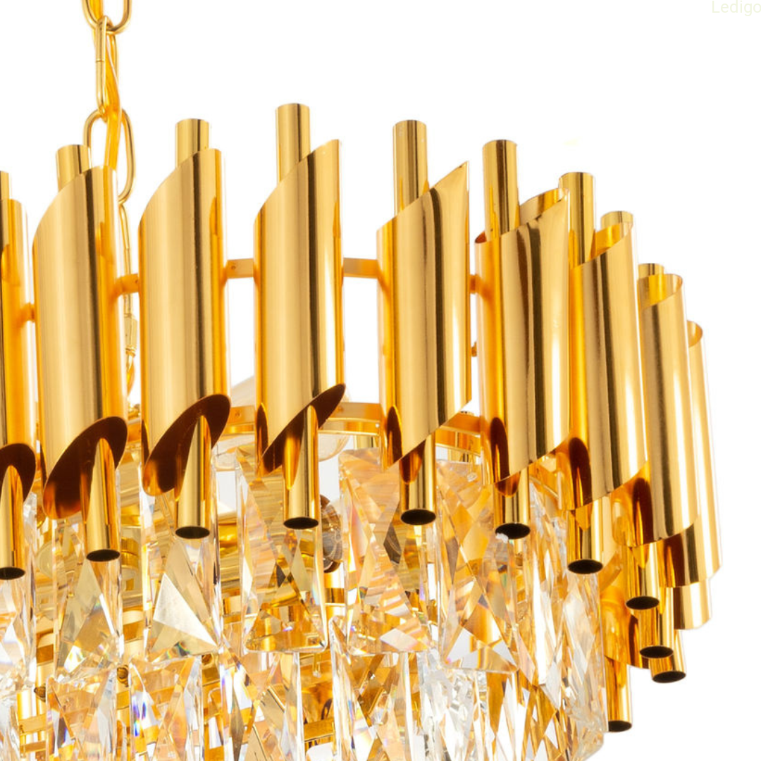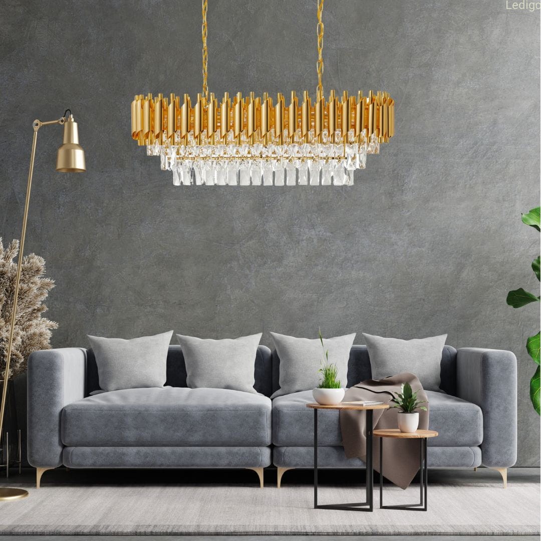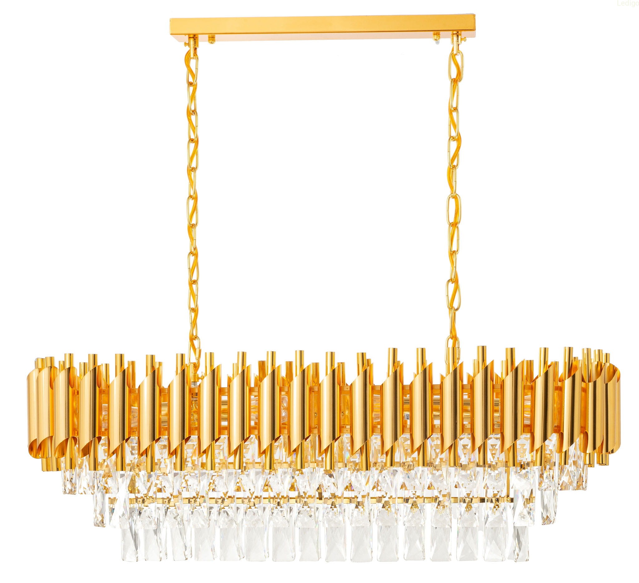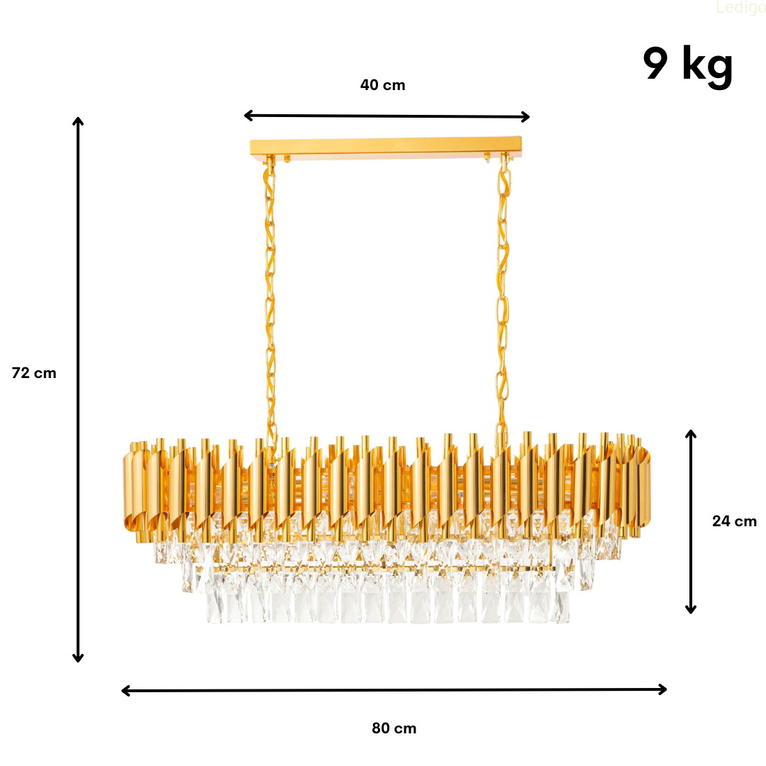PODŁUŻNY KRYSZTAŁOWY ŻYRANDOL Z KOLEKCJI LUXURY GOLD LEDIGO
