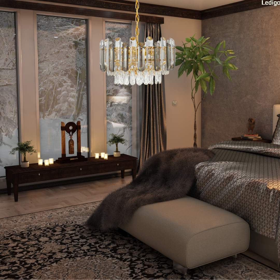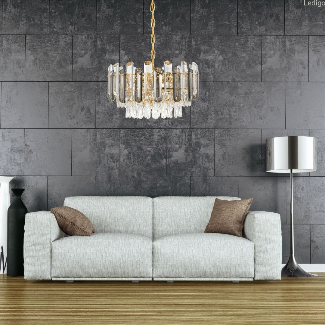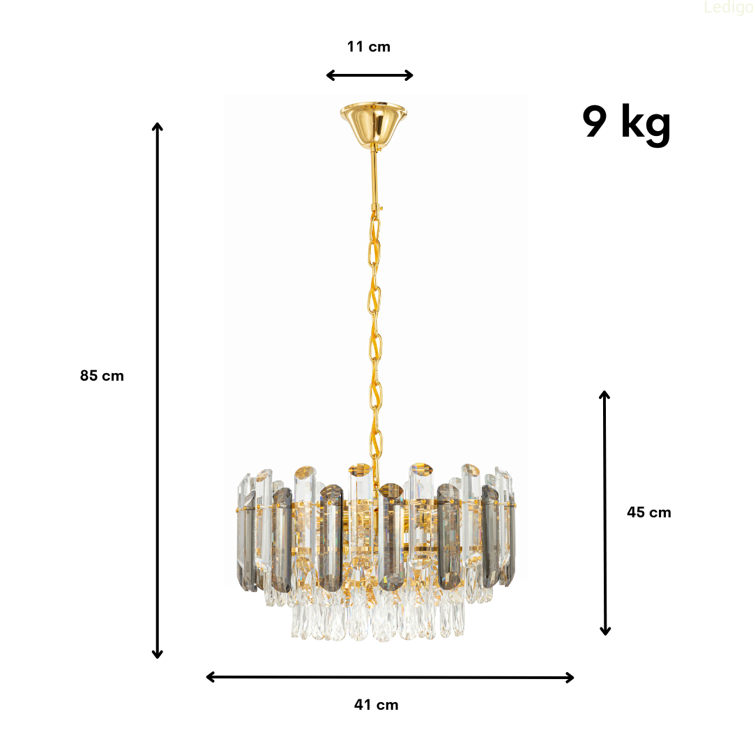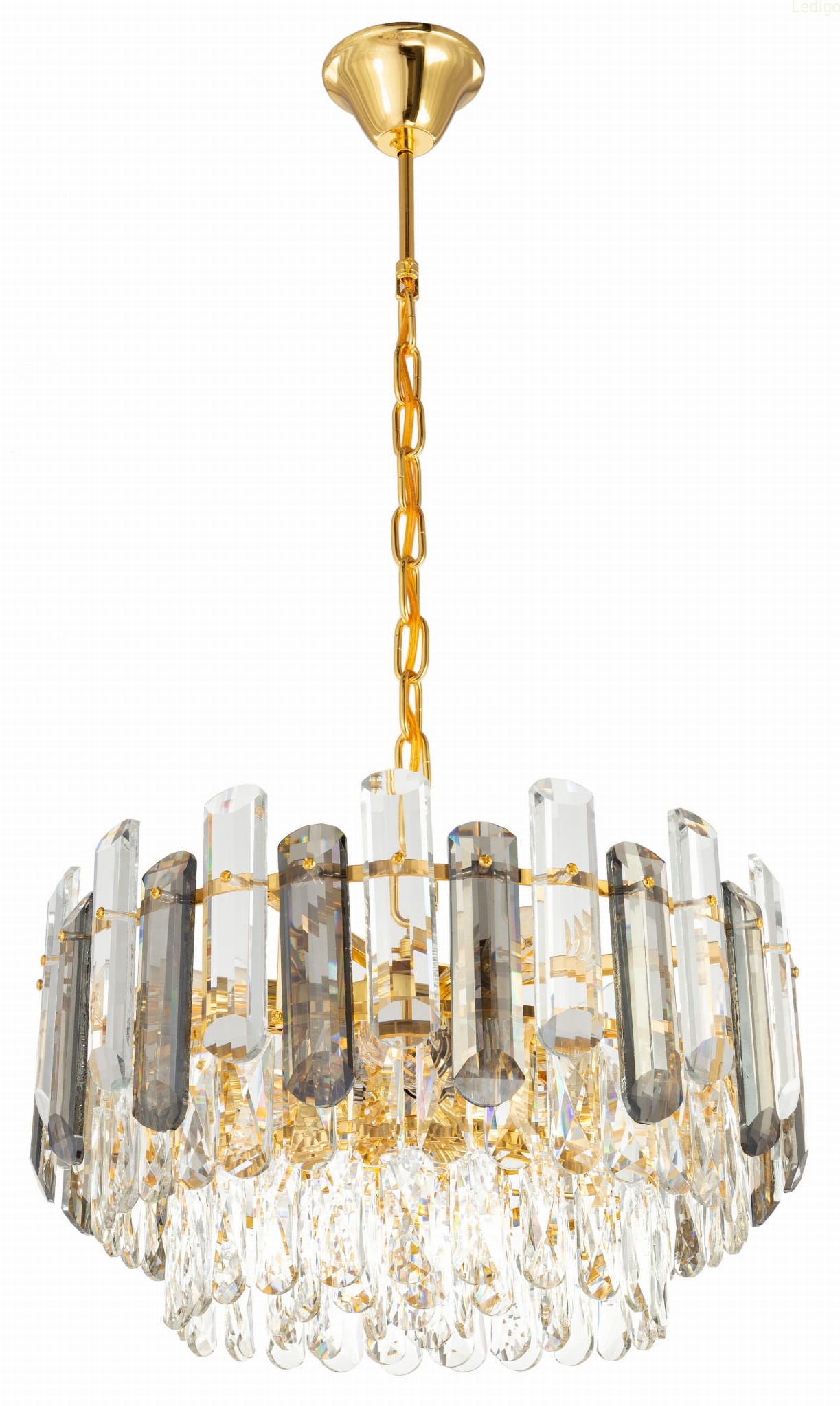 OKRĄGŁY KRYSZTAŁOWY ZWIESZANY ŻYRANDOL Z KOLEKCJI LUXURY GOLD GREY LEDIGO