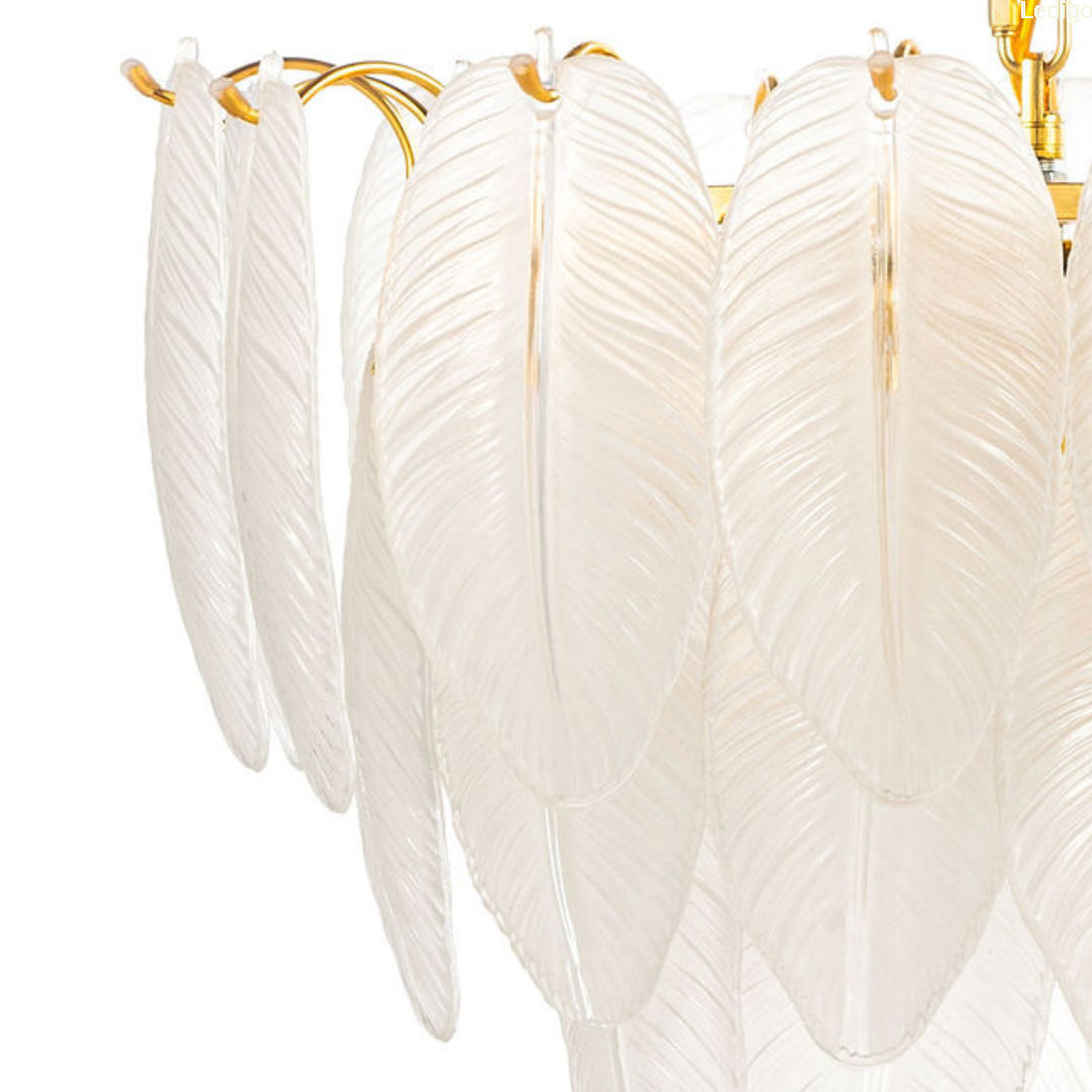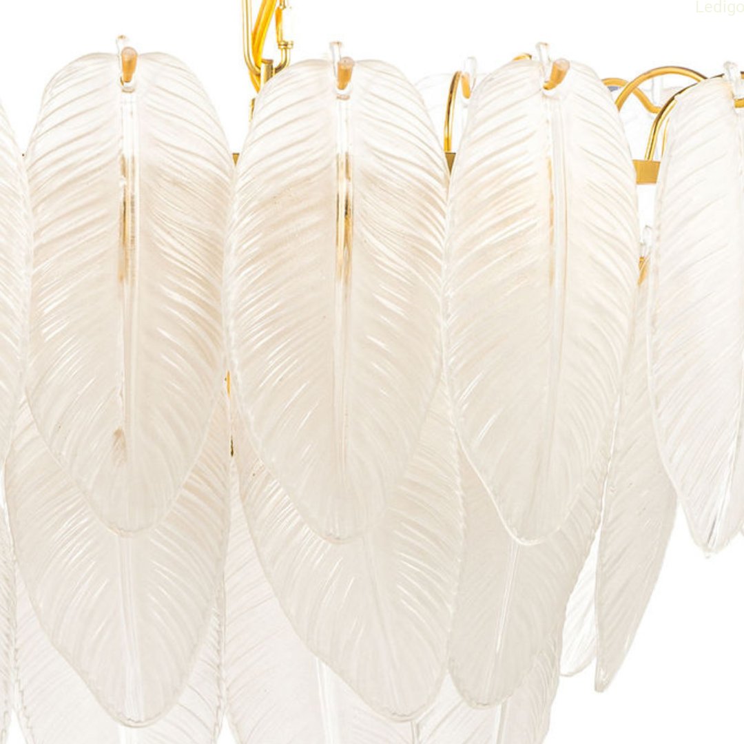 Szklane listki mocowane są kaskadowo w trzech rzędach. Każdy listek montowany jest indywidualnie co stwarza efekt lekkości pomimo znacznej masy całej lampy. Część metalowa wykonana jest z metalu w kolorze złotym.