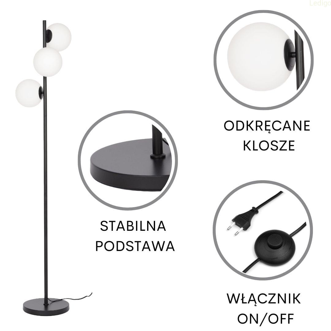Lampa podłogowa black białe kule MILANO