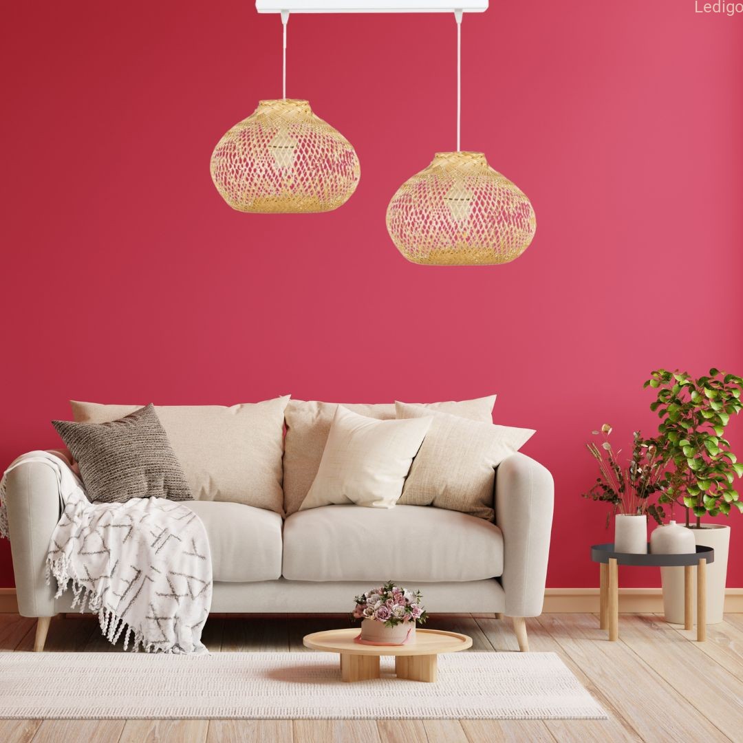 Lampa została zaprojektowana w duchu minimalizmu. Prosta forma stalowej belki i abażurów nadaje lampie lekkości i charakteru. Drewniane, bambusowe abażury olśnią każde pomieszczenie w twoim domu. Lampa idealnie wpisuje się w loftowe stylizacje nowoczesnych, oraz inspirowanych naturą wnętrz. Każda z dwóch zawiesi posiada możliwość indywidualnej regulacji wysokości.