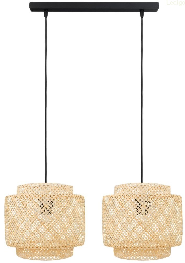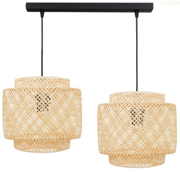 Lampa podwójna listwa czarna abażur bambusowy TH36